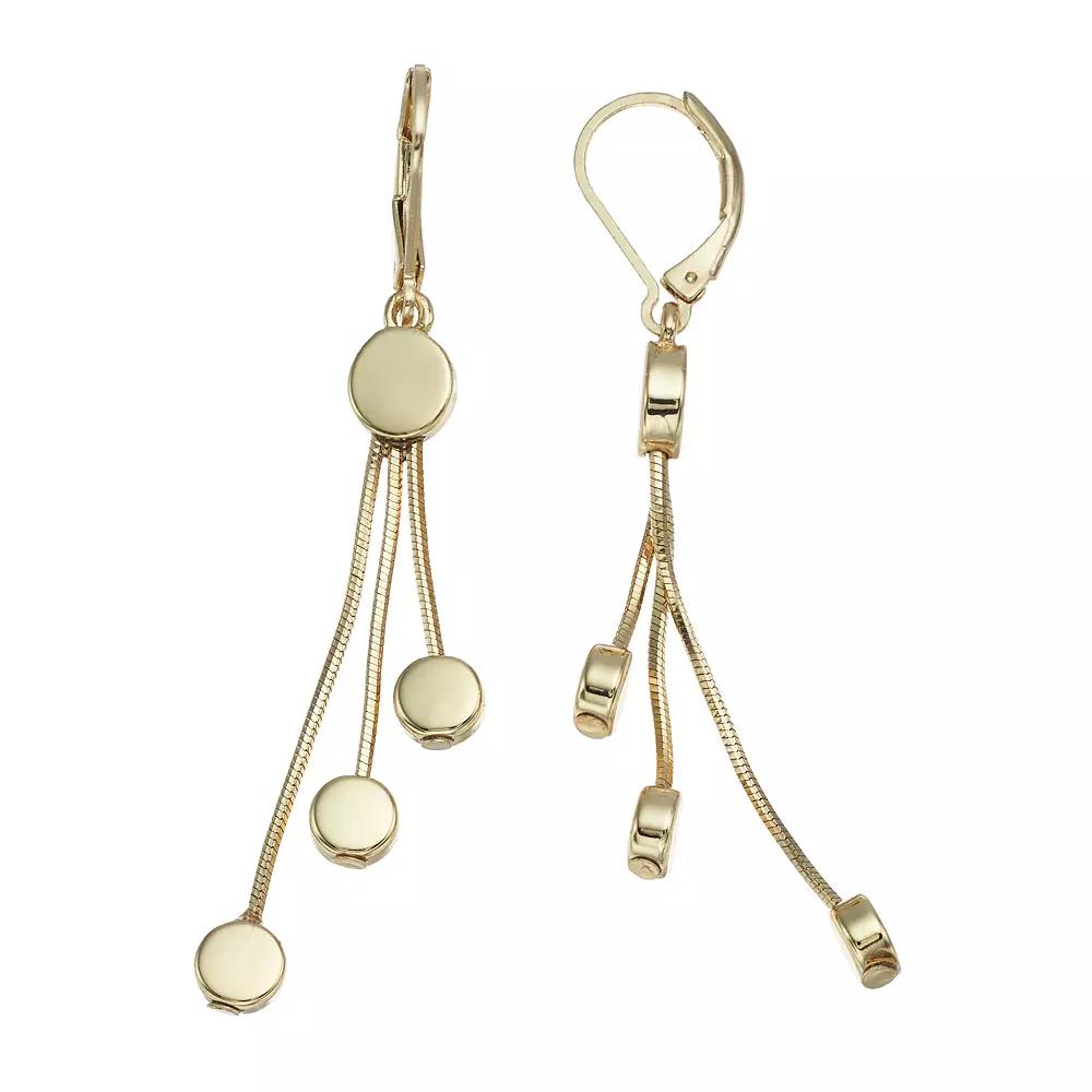 This fun drop earrings are the perfect piece for dressing up your everyday wardrobe. This fun drop earrings are the perfect piece for dressing up your everyday wardrobe. EARRING DETAILS Length: 2.5 in. Backings: leverback Metal: alloy Finish: polished Nickel safe Not appropriate for children 14 years old and younger. Size: One Size. Color: Gold. Gender: female. Age Group: adult.