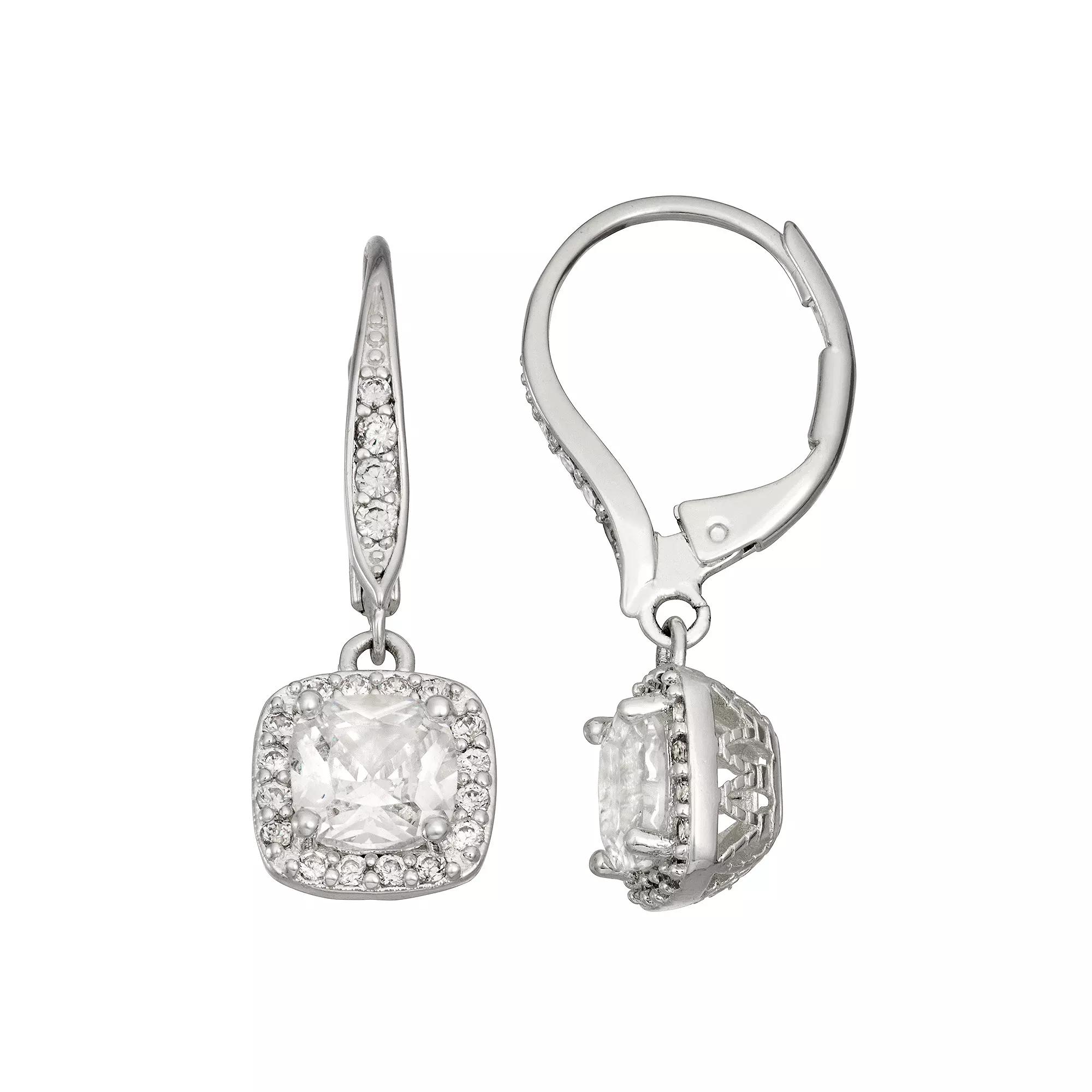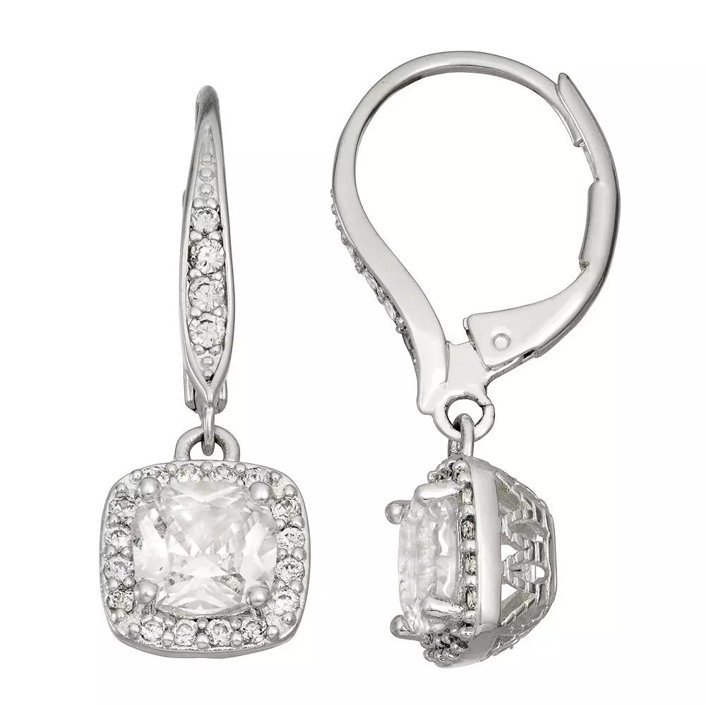 Add a touch of sparkle to your wardrobe with these cubic zirconia-accented drop earrings from Napier. Add a touch of sparkle to your wardrobe with these cubic zirconia-accented drop earrings from Napier. FEATURES Length: 25.4 mm Backings: leverback Metal: alloy Plating: silver tone Finish: polished Nickel safeSTONE DETAILS Stone type: cubic zirconia Total weight: 3 ct. Center stone size: 6 mm x 6 mm Shape: cushion, round Setting: prong, pave Not appropriate for children 14 years old and younger. Gemstones may have been treated to enhance their appearance. Special care may be required. Please visit our Gemstone Treatment & Special Care Guide for more information. Color: White. Gender: female. Age Group: adult.