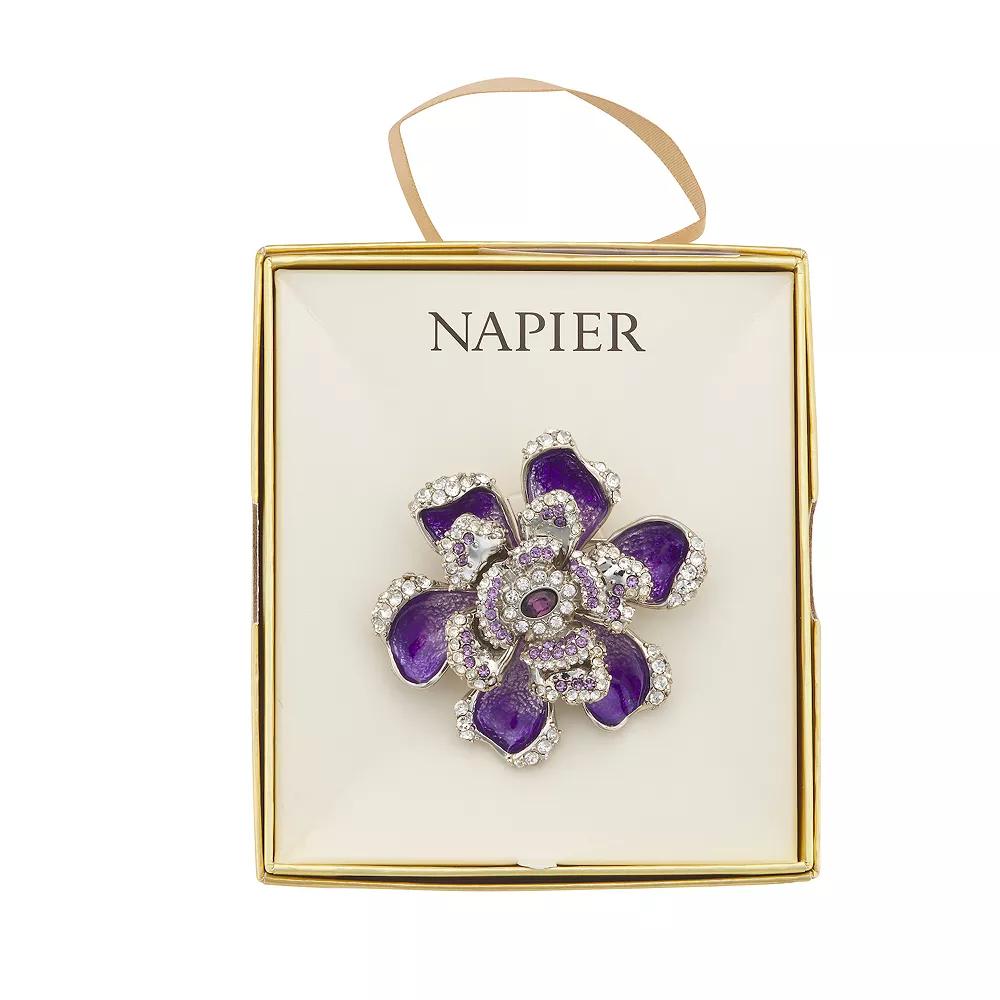 Put the perfect final touches on your next look with this Napier Silver Tone Purple Flower Enamel Pin. Click on this JEWELRY & WATCHES GUIDE to learn about fit, styles, materials and more! Put the perfect final touches on your next look with this Napier Silver Tone Purple Flower Enamel Pin. Click on this JEWELRY & WATCHES GUIDE to learn about fit, styles, materials and more! FEATURES Dimensions: 2.21 H x 2.15 W Metal: alloy Material: glass Plating: gold tone Finish: antiqued Packaging: boxed Imported Not appropriate for children 14 years old and younger. Size: One Size. Gender: female. Age Group: adult.