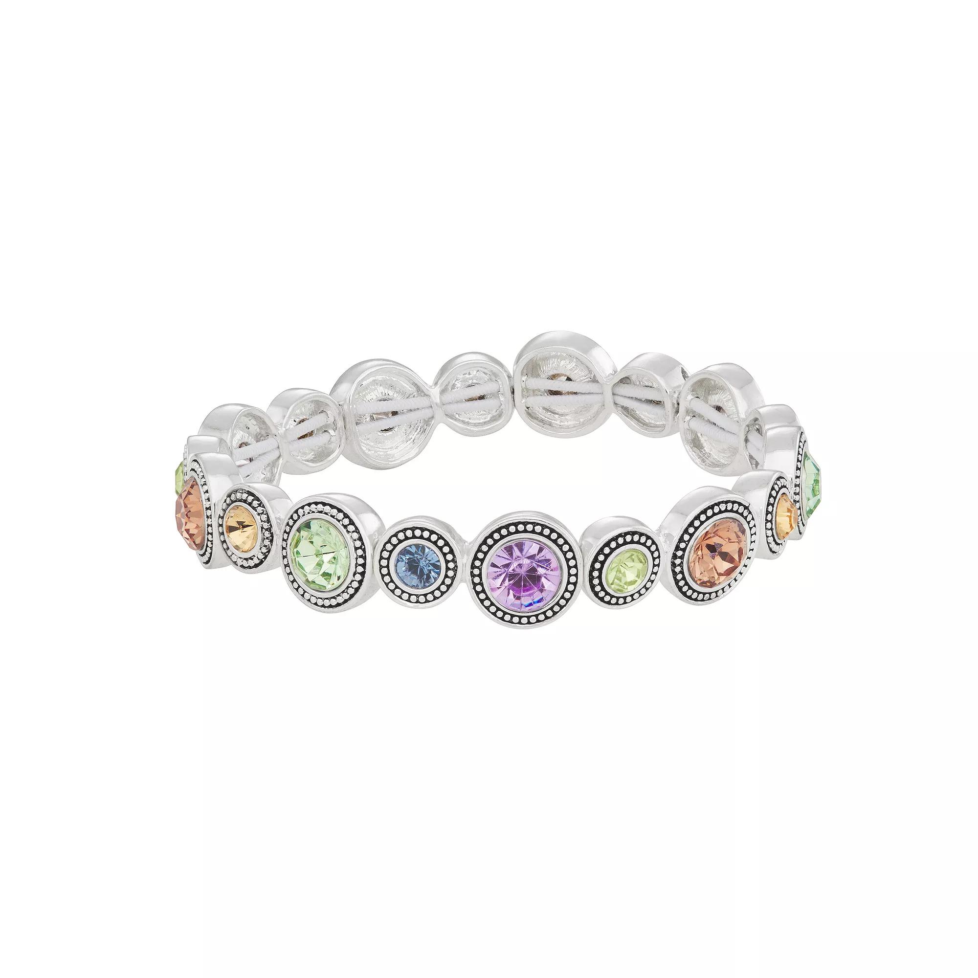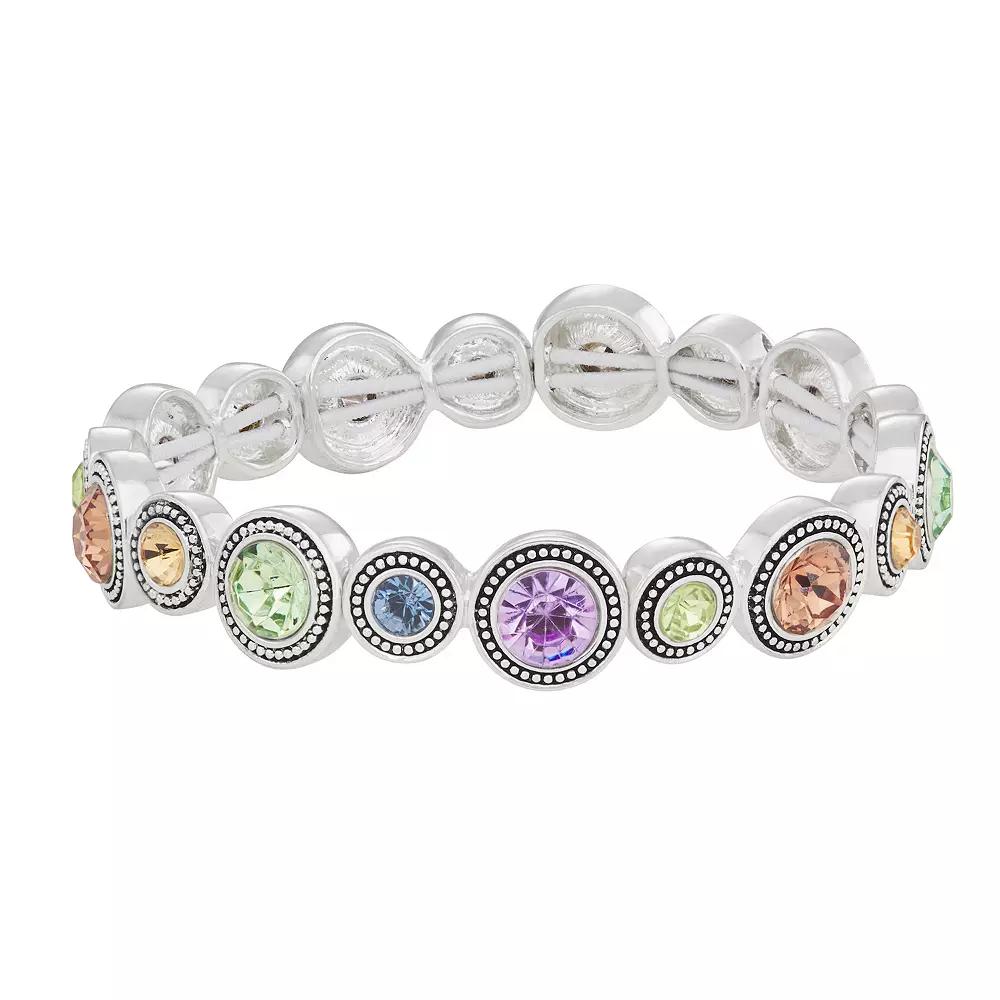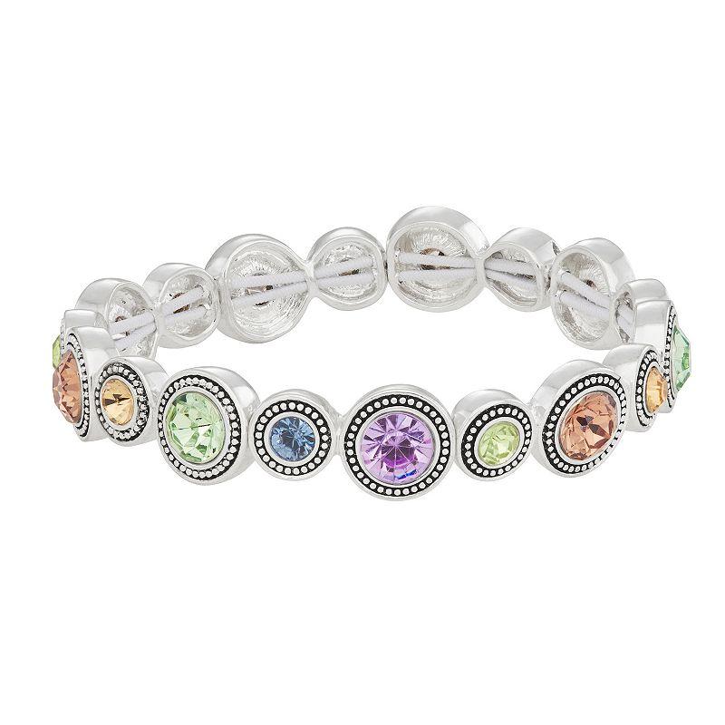 This simulated crystal-encrusted silver tone bracelet from Napier is the perfect accessory for when you want to add a little sparkle to your outfit. This simulated crystal-encrusted silver tone bracelet from Napier is the perfect accessory for when you want to add a little sparkle to your outfit. BRACELET DETAILS Length: 7.5 in. Metal: alloy Plating: silver tone Finish: antiqued Material: glass Nickel safe Not appropriate for children 14 years old and younger. Size: One Size. Color: Multicolor. Gender: female. Age Group: adult.