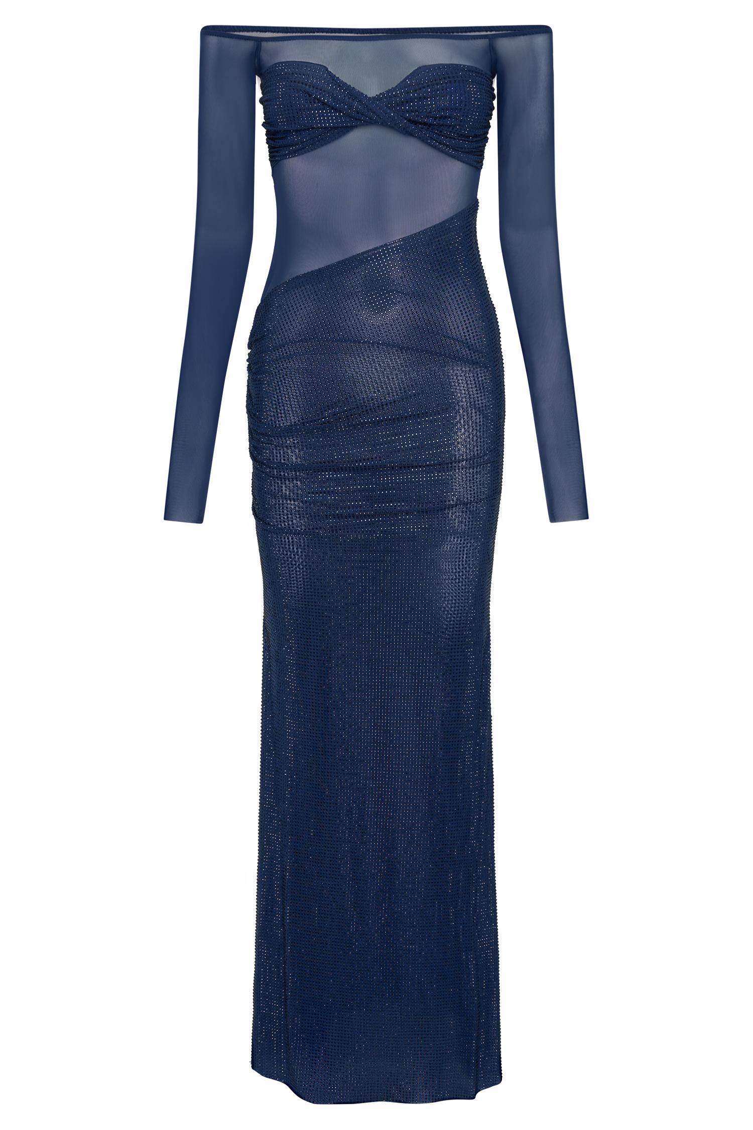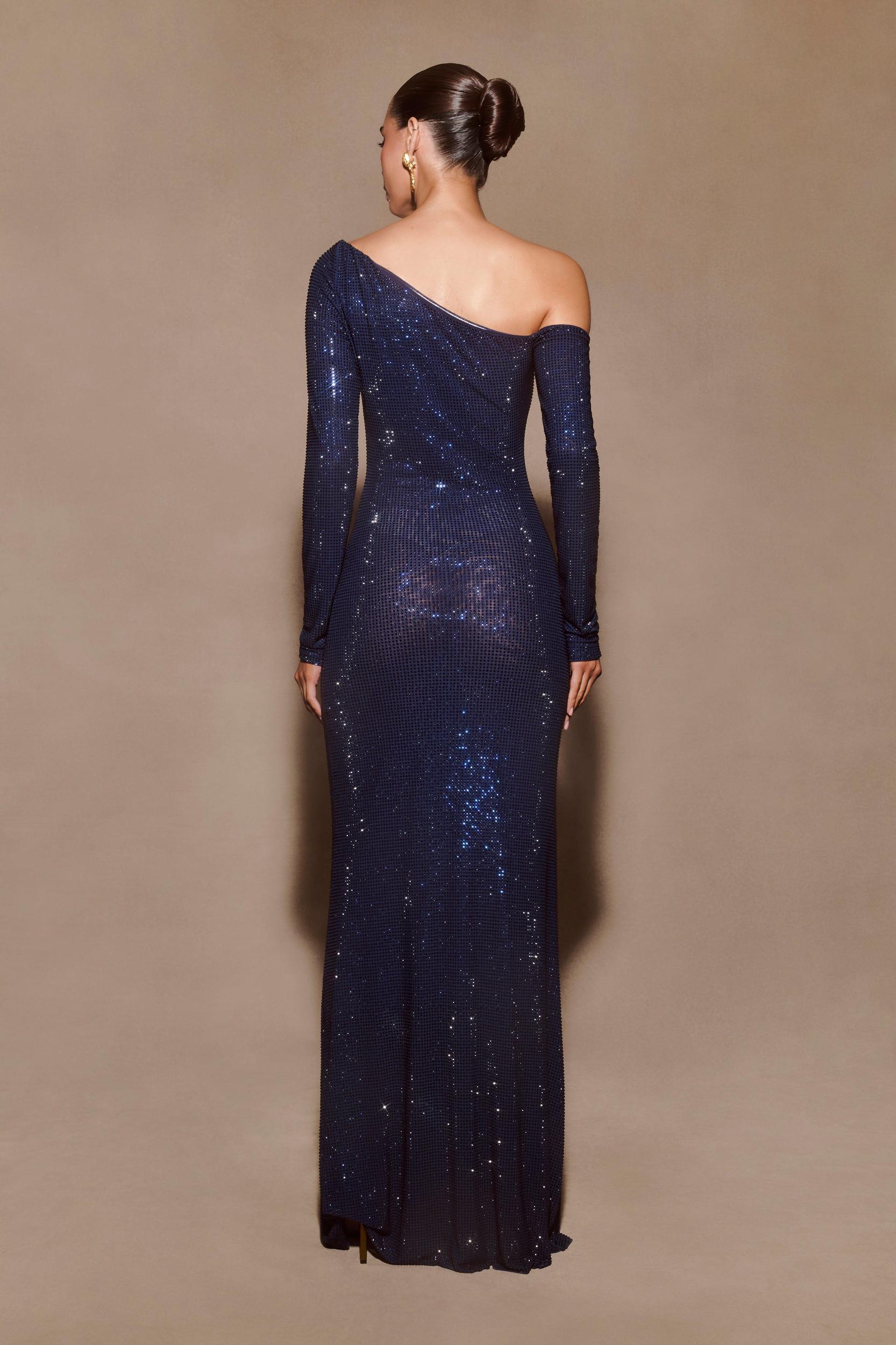 A dress as breathtaking as you are. The NASH Diamante Off Shoulder Maxi Dress is the perfect blend of glamour and sophistication. Designed with a flattering Bardot neckline and long sleeves, this dress exudes timeless elegance. The mesh fabrication creates a sultry, sheer effect, while the diamante contrast bust adds a touch of sparkle and luxury. A twist front detail elevates the design, and the diamante-adorned skirt brings a stunning shimmer with every step. The asymmetrical waistline, paired with gathering at the hip, enhances your natural curves. Crafted from stretch fabrication, this dress offers both comfort and style, making it a show-stopping choice for any special occasion. This garment is designed to be a bodycon fit. If you prefer a more relaxed fit, please size up.