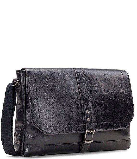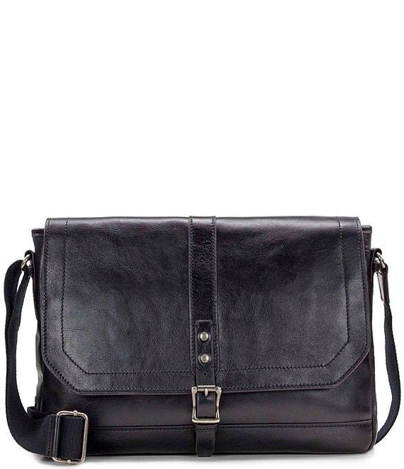 From Nash, this bag features: A sleek professional carry-all This full grain leather messenger bag is the perfect accessory to keep your life organized on the go Adjustable shoulder strap made from heavy duty webbing, makes for a comfortable carry Front buckle detail, rear slip pocket with magnetic closure, slip pocket under front flap, magnetic closure, burned edge finish Large zip pocket, 2 gusseted slip pockets, map print, faile lining 16" (W) x 11" (H) x 3 1/2" (D) 11"25" Strap drop leather Imported.