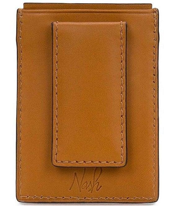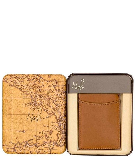 From Nash, money clip features: (1) x divided pocket (1) x credit card slots (1) x magnetic clip Signature map-print faille lining Burned-edge finish Heavy, handcrafted stitching Includes RIFD-blocking protection box  4 3/8” wide x 3 3/8” tall x ¾” deep Full-grain leather Imported.