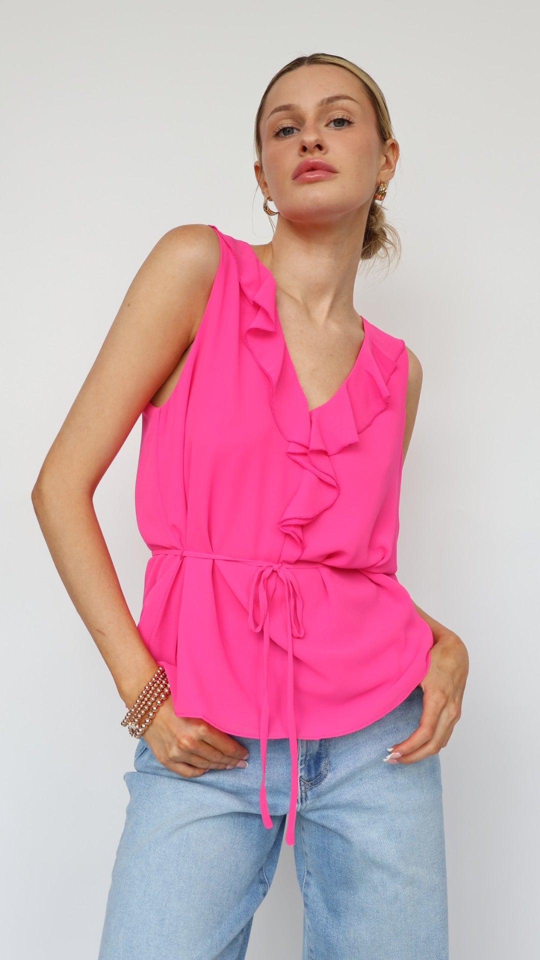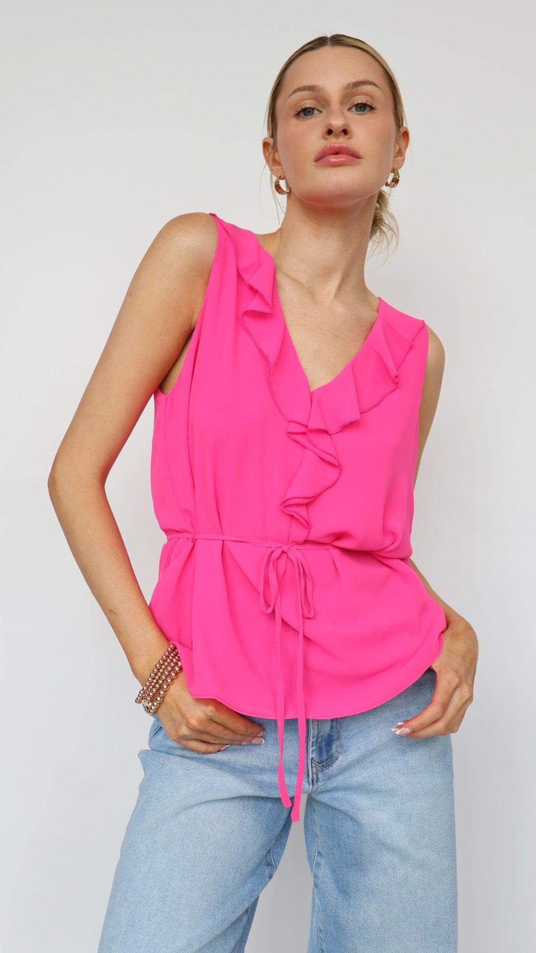 Turn heads in this neon stunner that’s equal parts flirty and flattering. Featuring a feminine V-neckline framed by soft ruffle detailing, this top brings a playful touch to your everyday style. The adjustable tie waist cinches to define your shape, while the bright neon hue adds instant energy to any outfit. Pair it with your favorite denim or a sleek skirt for a bold, put-together look that shines day or night.