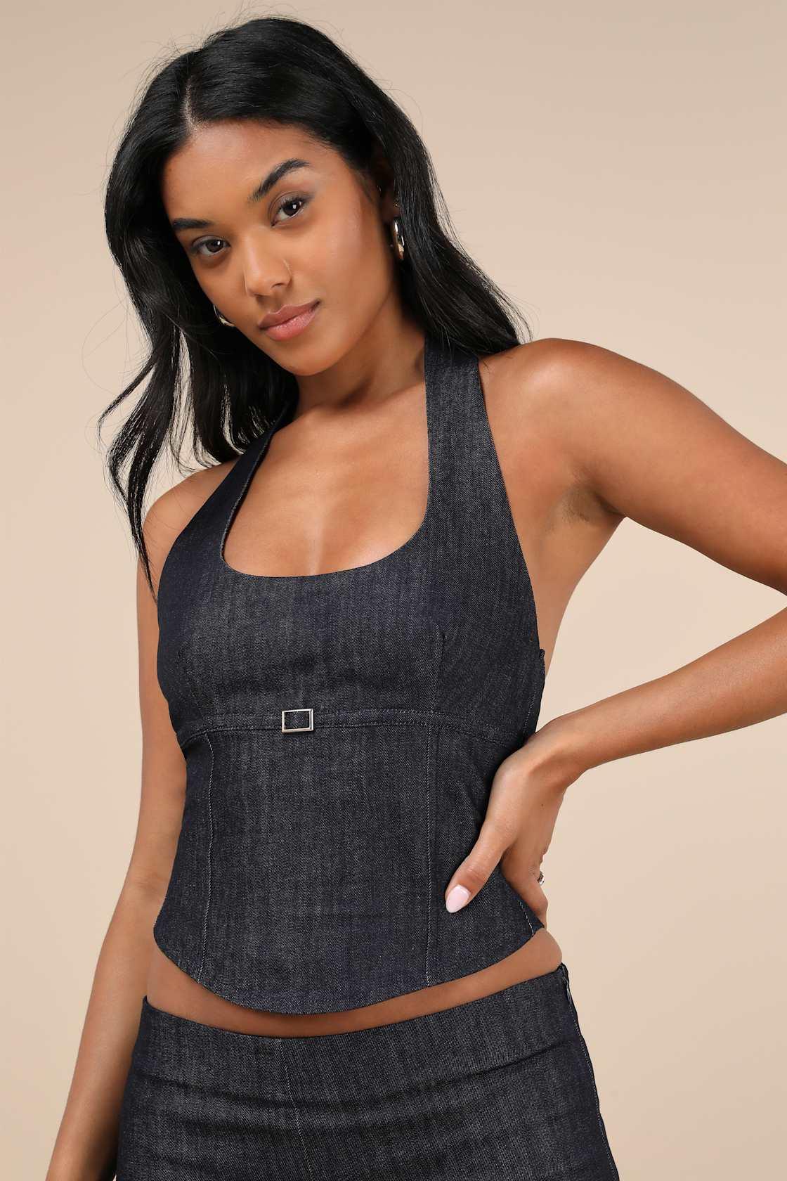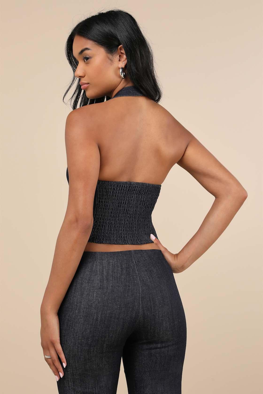 Channel perfect retro vibes in the Motel Nasya Dark Blue Chambray Cropped Halter Top! Trendy, slightly stretchy chambray fabric shapes this totally iconic top that has a halter neckline and a fitted bodice with a darted bust. Under-bust seaming features a chic buckle-like detail, atop rounded, cropped hems. Smocking at back for fit.