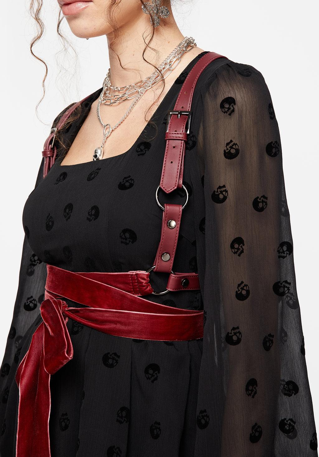 Take a bow- Red faux leather ribbon wrap harness - Adjustable buckles on shoulder straps to perfect your fit - Y-shaped back straps keep shoulders in place - Wrap velour ribbon fastening loops around middle to tie in a cute bow - Constructed with gleaming silver O-rings & hardware - Flexible oxblood red faux leather fabrication for a sleek look - Branded logo & sizing embossed on the interior - The cherry on top of your next look 100% PU leatherSizing:S/M: UK 6-10(61cm - 71cm)M/L: UK 12-16(76cm - 86cm)L/XL: UK 18-22(91cm - 101cm)