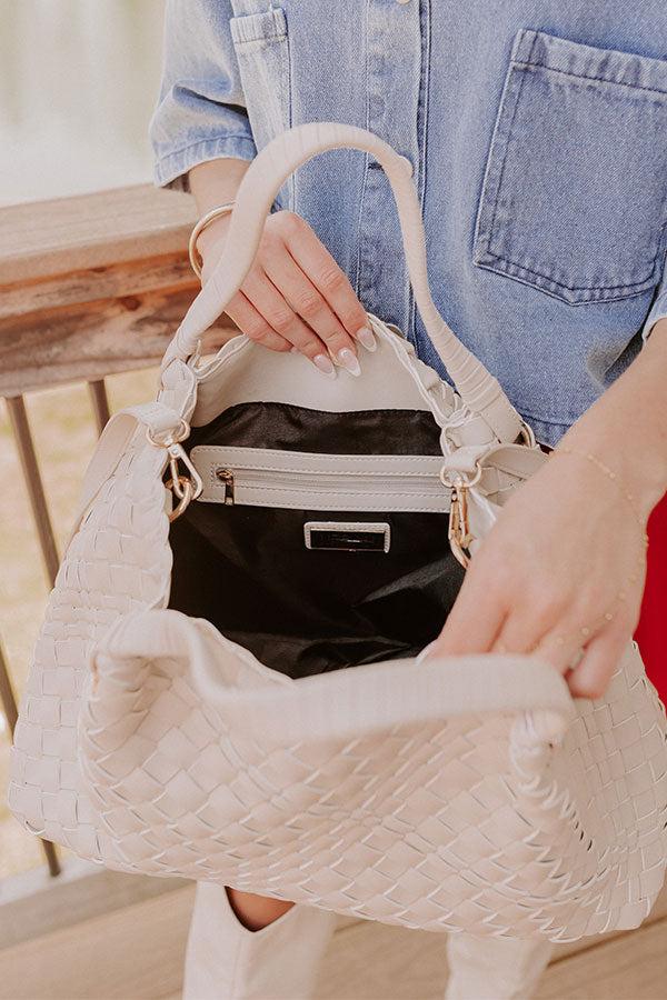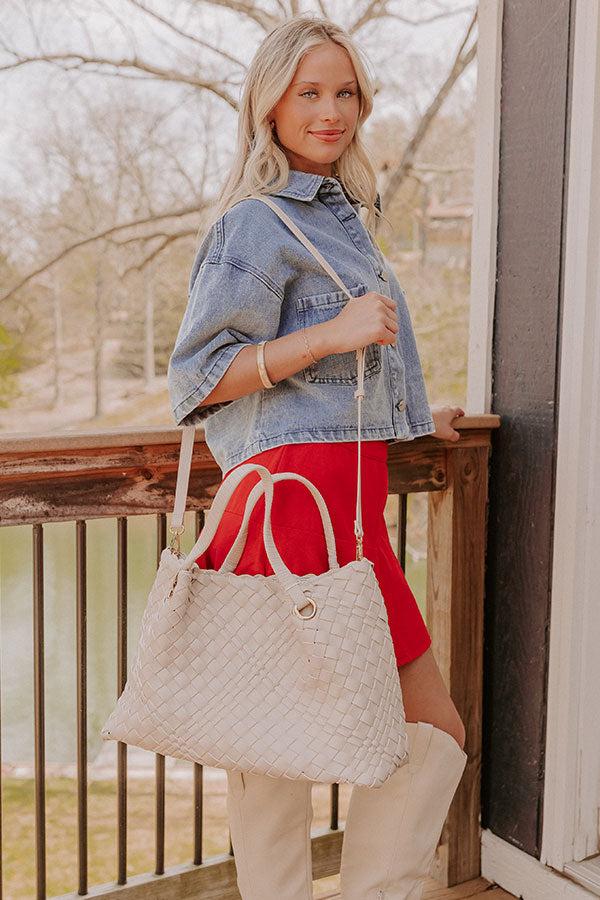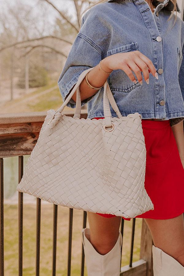- This trendy woven tote instantly elevates everyday looks! Whether you're out running errands or heading to brunch with the girls, it's your go-to carryall. - Woven faux leather material - Gold colored hardware - Two shoulder straps - A detachable adjustable strap - Magnetic button closure - A fully lined interior with three pockets