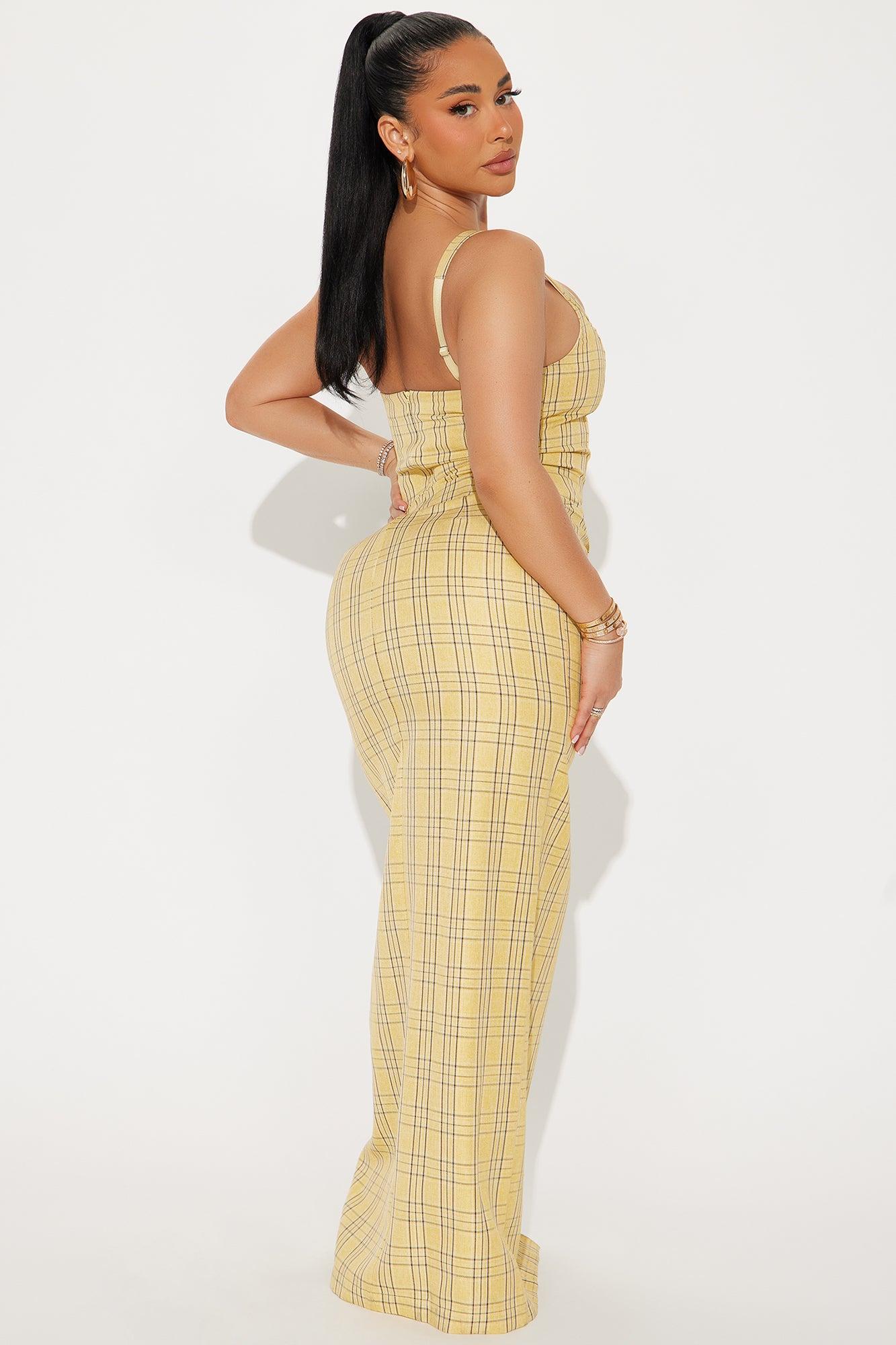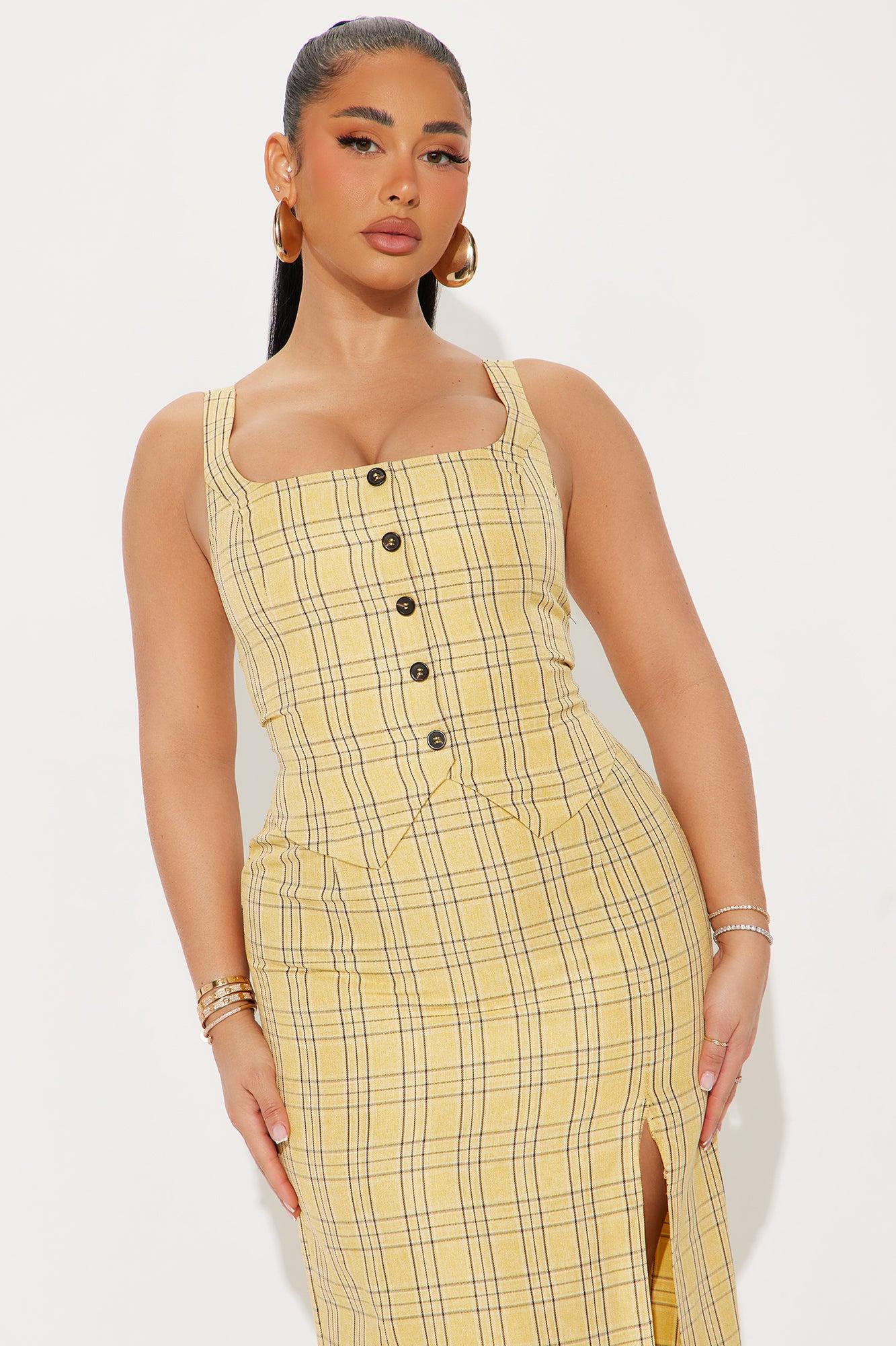 Natalie Plaid Tailored Maxi Dress - Yellow/combo