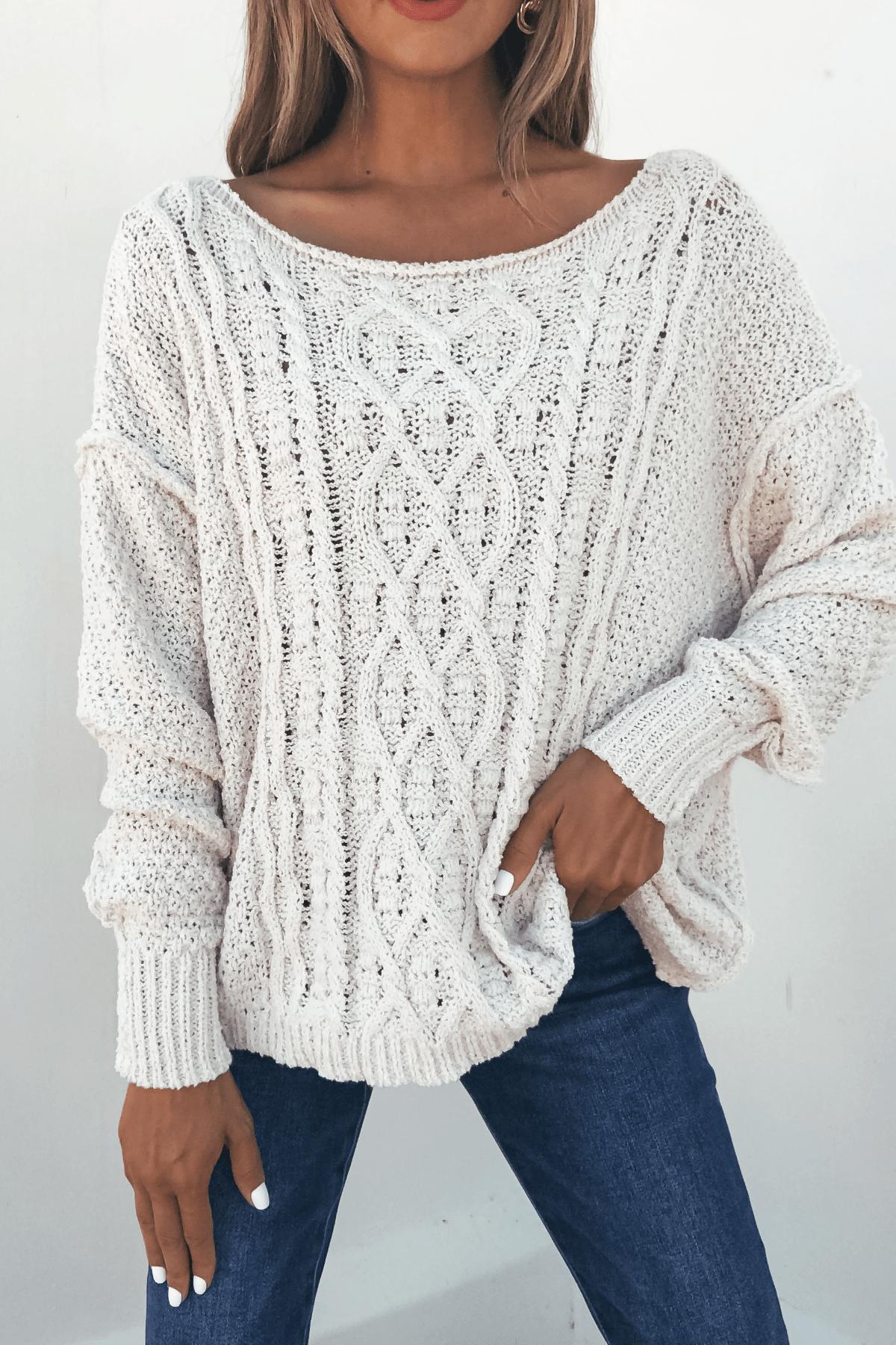 The Natasha Sweater is your go-to cozy layer for crisp fall days. Crafted from soft, textured cable knit with a relaxed silhouette, it features a wide boat neckline and effortless drop shoulders for that perfectly laid-back feel. Its chunky knit design makes it a seasonal favorite for pairing with denim, skirts, or leggings for a chic yet comfortable look.