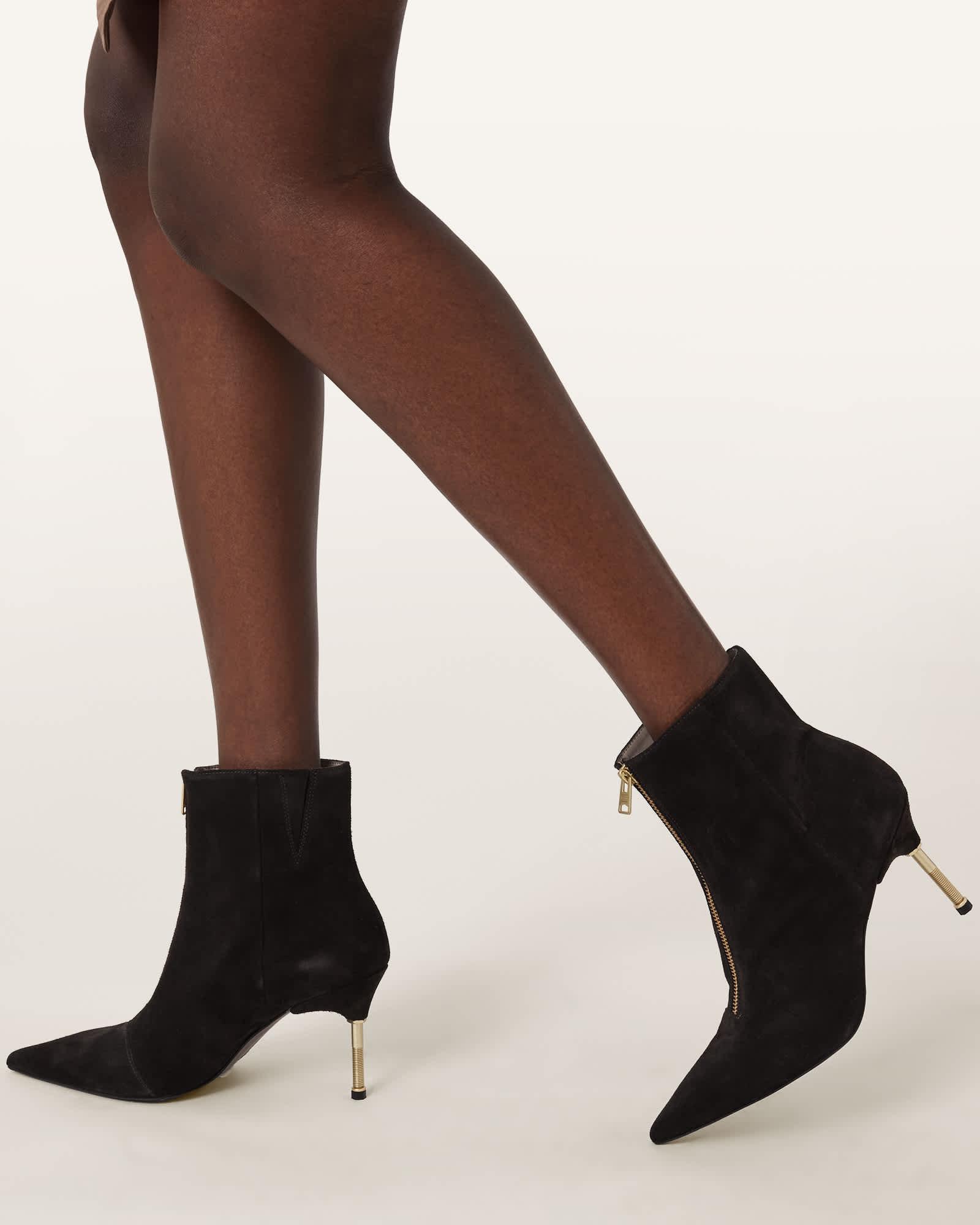 Natasha Pointed Zip Up Suede Boots Bitter Brown | ALLSAINTS US