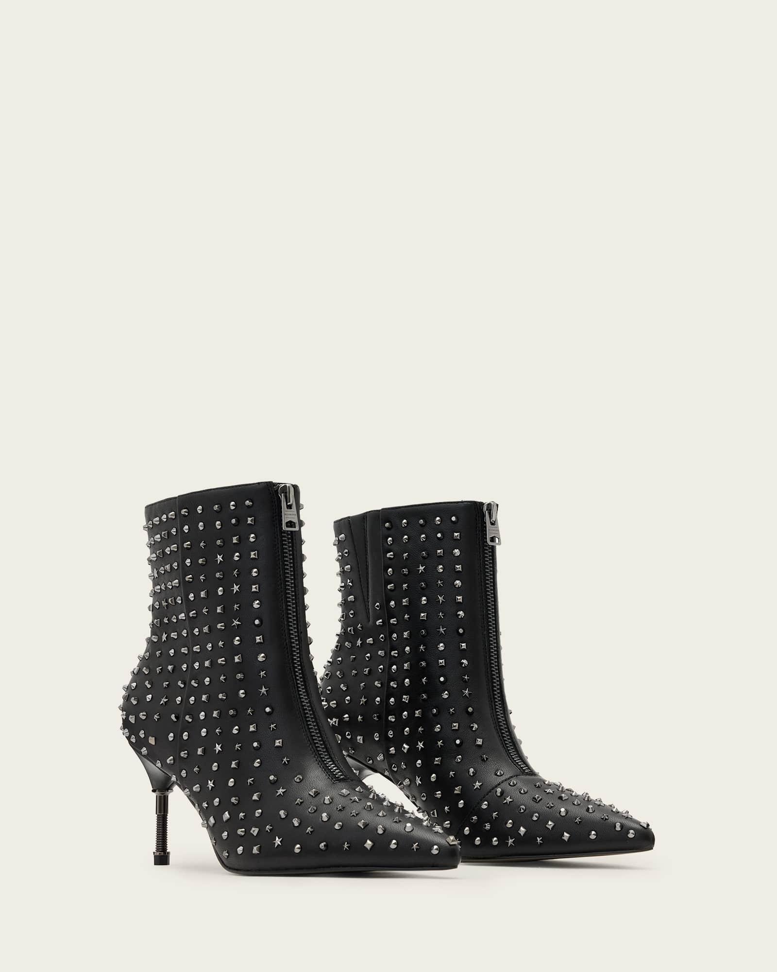 Natasha Studded Leather Boots Black | ALLSAINTS US