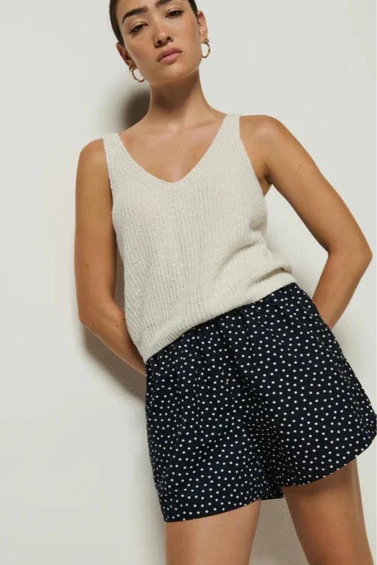 Look chic and feel comfy in the Nation LTD Flynn Short in Polka Dot. With an elastic waistband for the perfect fit, on-seam pockets for convenience, and shirring details for a stylish touch, this fluttery short is perfect for any occasion. Whether it's a lunch date or running errands, this Cabana Polka Dot design adds a playful twist to your everyday look.