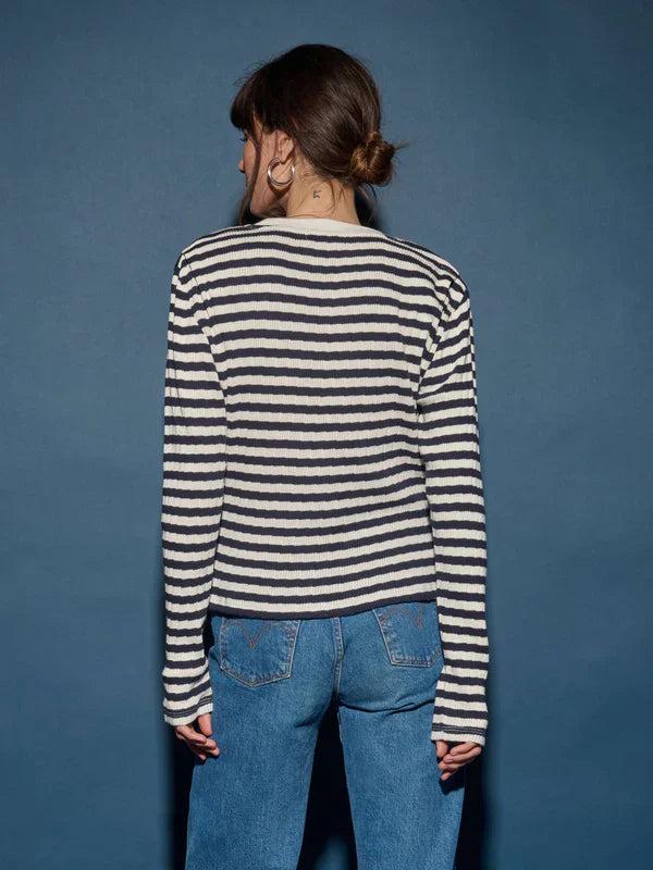 Stay stylish and comfy in our Nation Marsel Long Sleeve! With a chic crew neckline, long sleeves, and signature gold snaps on the shoulder, this top is a must-have. Plus, the Pointelle Stripe design adds a touch of elegance. Look good and feel confident in our latest creation!