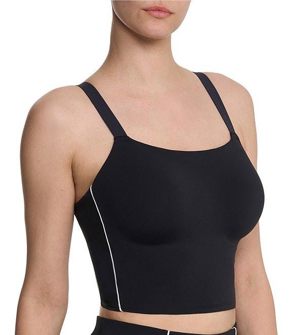 From Natori, this tank top features: Longline silhouette with built-in bra support for D DD cups Moisture-wicking, stretch interlock fabric with UPF 50 Molded cups and stabilizer frame for structure and bounce control Convertible and fully adjustable wide stretch straps with a swan hook Clean-finished neckline for easy layering Hook & eye back closure Nylon/elastane/polyester Hand wash Imported.