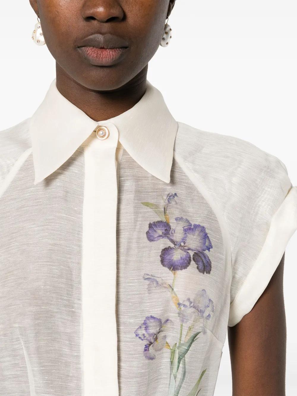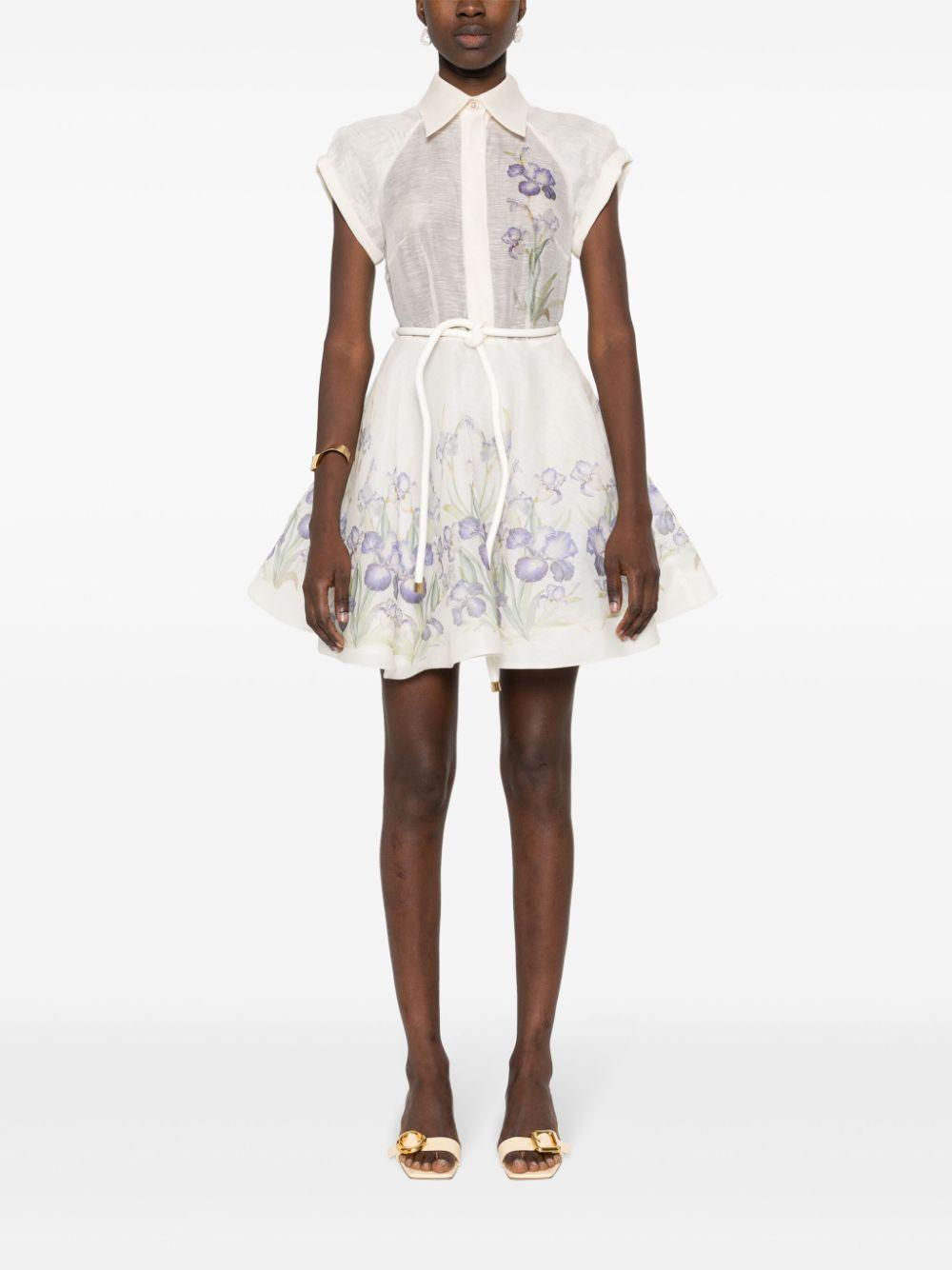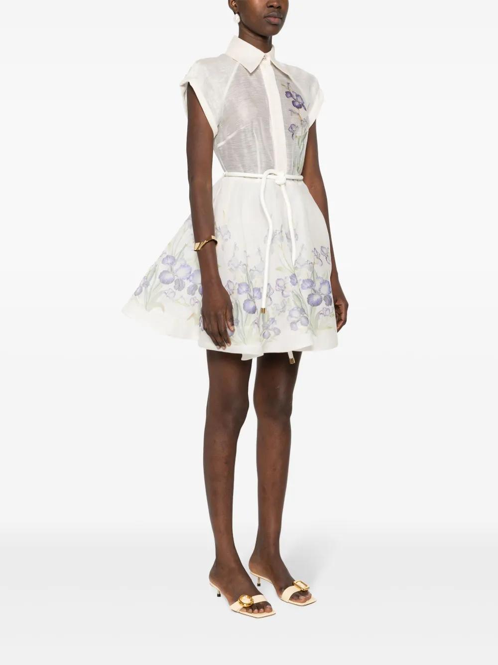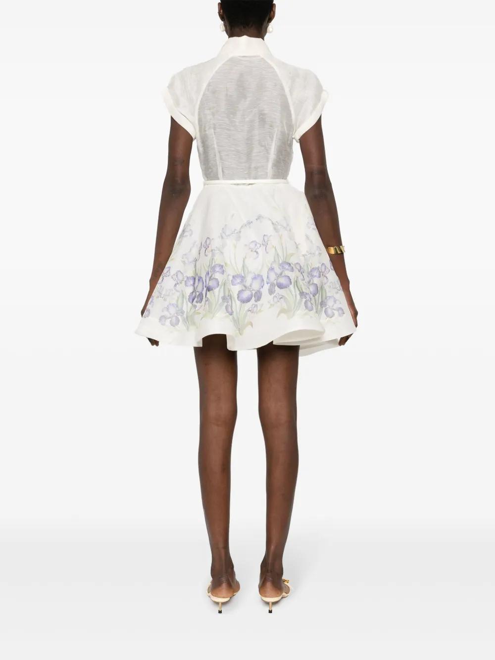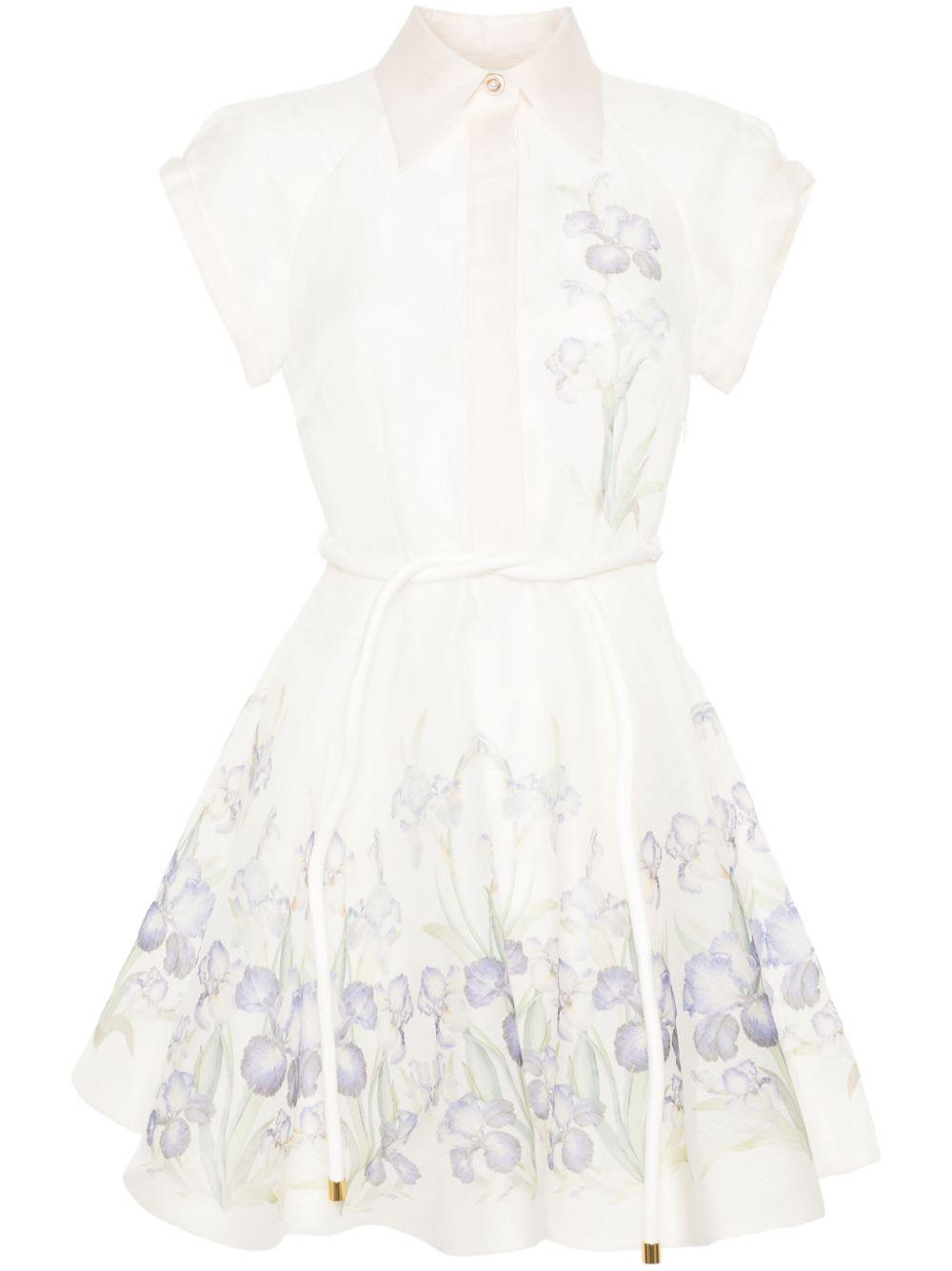 Shop Zimmermann Natura Mini Dress In White from 600+ stores, starting at $906. Style Notes Zimmermann's version of the shirt dress is everything we'd expect from the label. Tailored to a feminine fit-and-flare silhouette, the Natura design is printed with painterly iris flowers and detailed with a tie-fastening belt at the waist.; Info & Care Zimmermann linen and silk-blend organza dress; Blue Iris print, raglan sleeves, turn-up cuffs, concealed button-fastenings at bodice, detachable waist tie, side slip pockets, structured hem, partially lined Concealed zip fastening at side; 53% linen, 47% silk; lining: 100% cotton; Dry clean; Size & Fit Length shoulder to hem: 34.5 inches/ 87.5cm; Midweight; Slim across the bust and waist, flared skirt; Model is 5'9""/ 175cm and wears a size 0