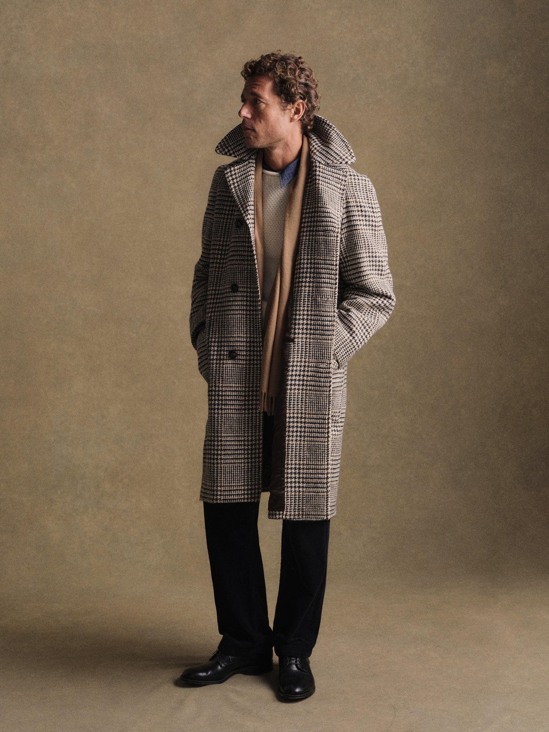 Natural / Black Glen Plaid Donegal Tweed Balmacaan