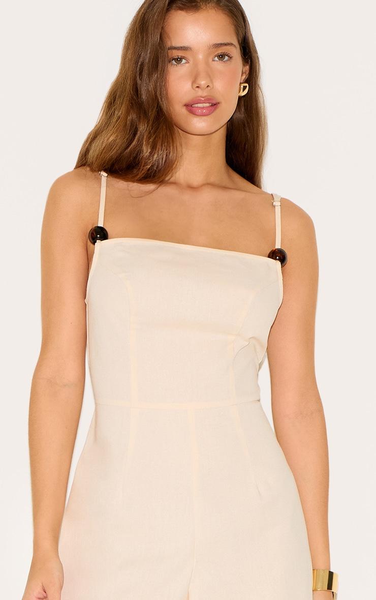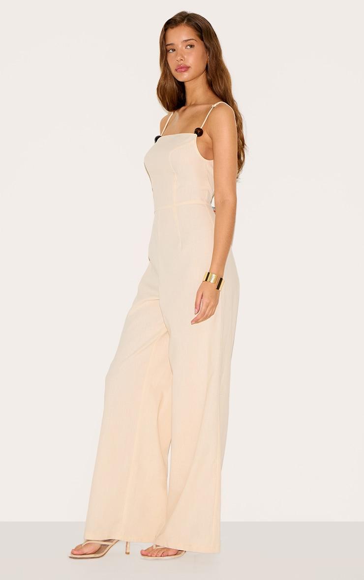 Effortless evening takes form in the Natural Linen Blend Boat Neck Bead Detail Jumpsuit. Defined by delicate straps accented with subtle bead details at the shoulder, the clean neckline frames the upper body. The piece traces the form through the bodice before falling into a confident wide leg shape. Elevate the aesthetic with sharp heeled mules and a sleek clutch; it's the key piece for understated after-dark polish.Length approx 155cm/61inch (Based on sample size US 4)Model wears size UK 8/ EU 36/ AUS 8/ US 4Model Height - 5ft 8inchp]:!mb-4inch>Brand: PrettyLittleThingCategory: Jumpsuits & PlaysuitsProduct type: Wide Leg JumpsuitColor: NaturalMaterial: Faux LinenDesign: PlainNeckline: Boat NeckSleeves: SleevelessOccasion: Evening