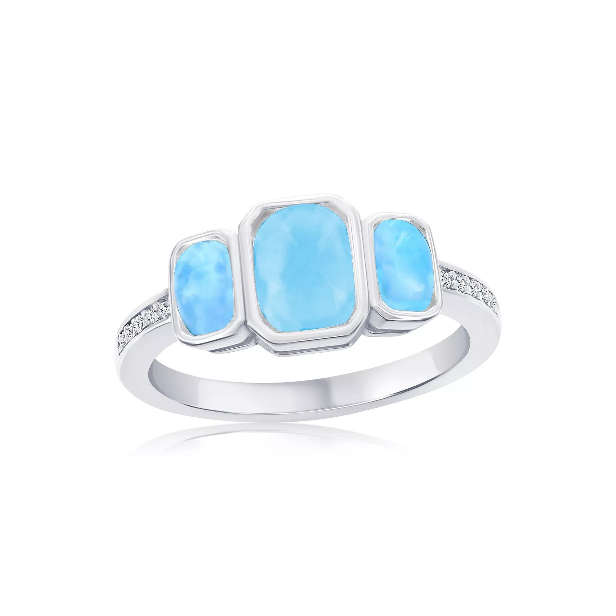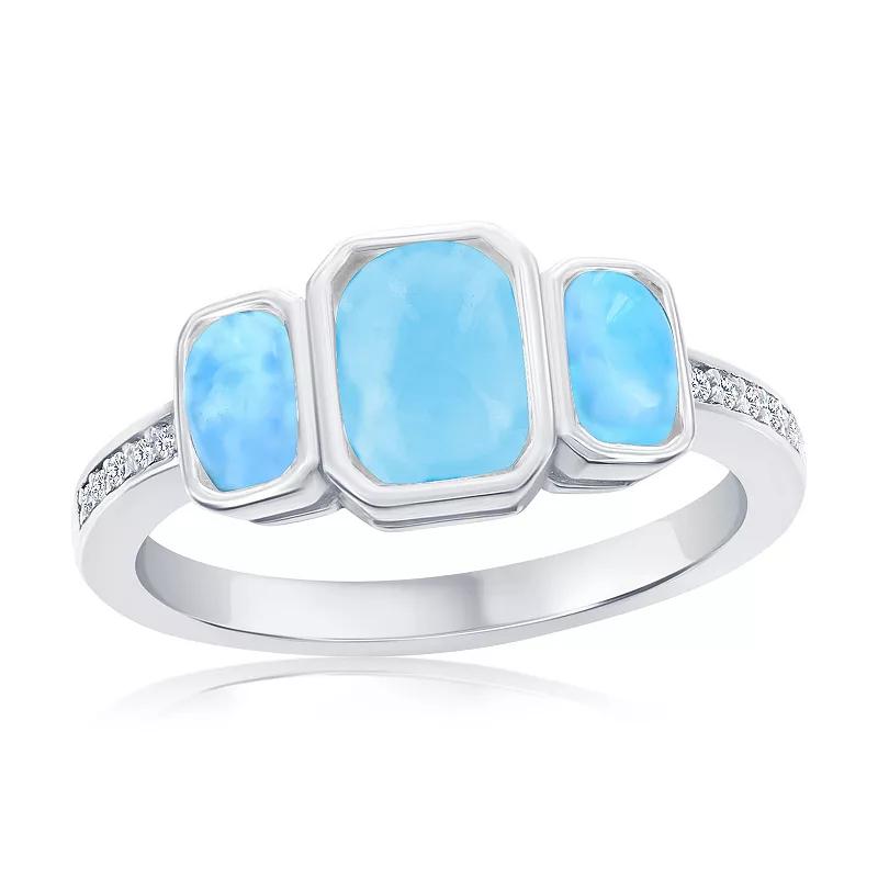 Nautica Rocks Sterling Silver Rectangle Larimar & Cubic Zirconia Ring, Women's,  Product Image
