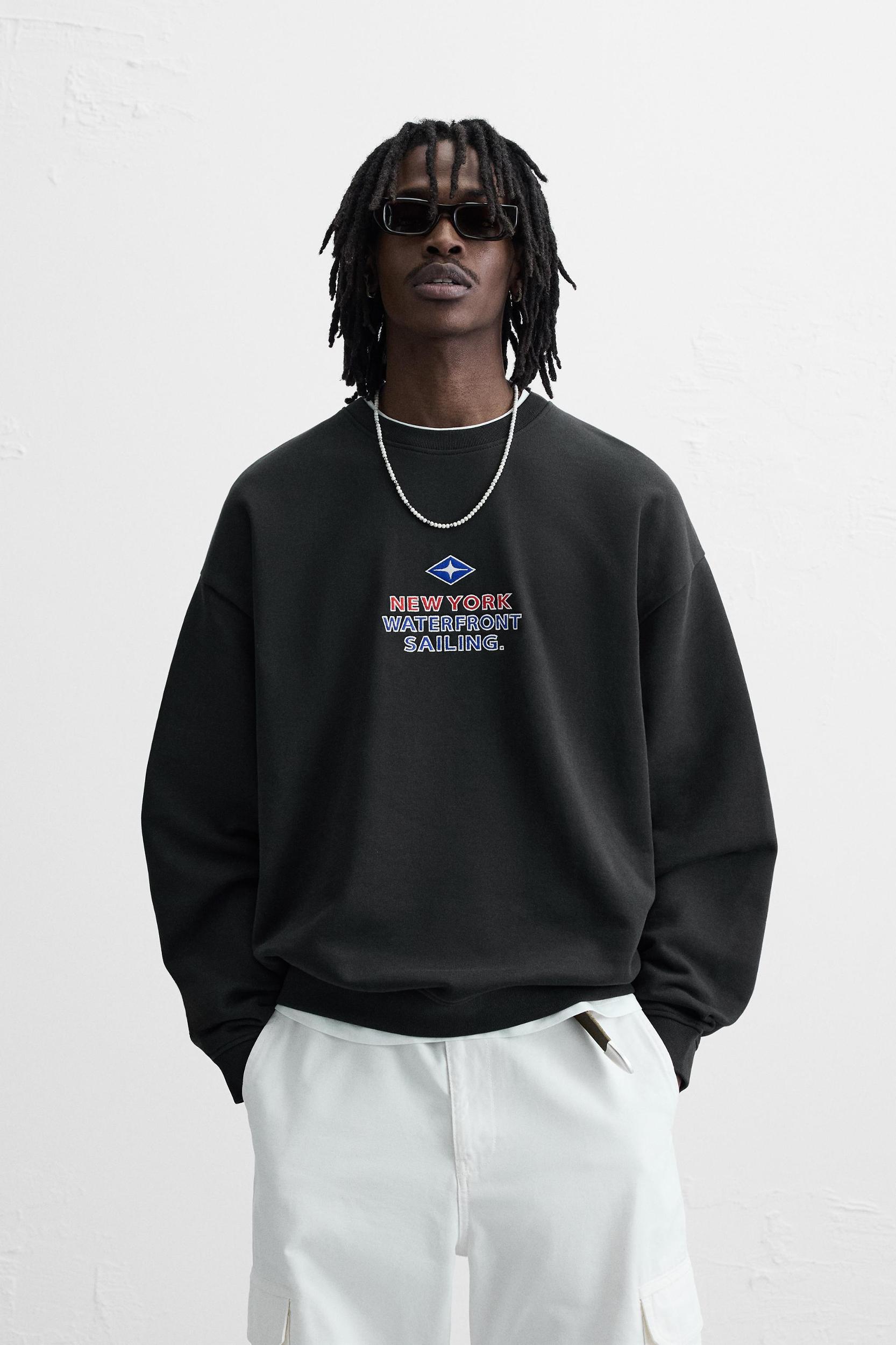 NAUTICAL EMBROIDERED TEXT SWEATSHIRT