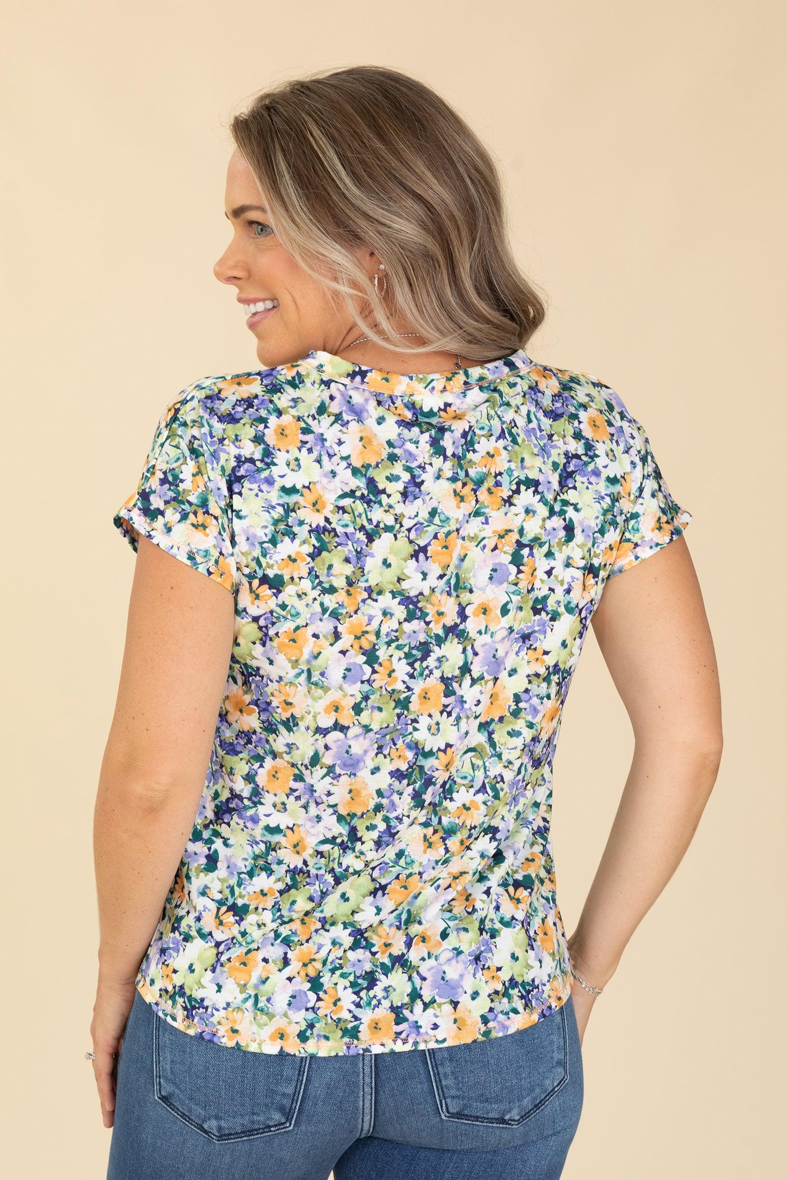Product Details Colors: Navy, Orange, Lilac, White, Hunter Green, Blush, Olive Neckline: Round Sleeve: Short Sleeve Hemline: Straight Brand: BomBom Material and Care 95% Polyester 5% Spandex Machine Wash Cold Hang/Line Dry Made In The USA Size and Fit Small: Bust 38" Waist 38" Length 24.5" Medium: Bust 40" Waist 40" Length 25" Large: Bust 42" Waist 42" Length 25.5" X Large: Bust 44" Waist 44" Length 26" Erica is 5’7” and wearing her true size small