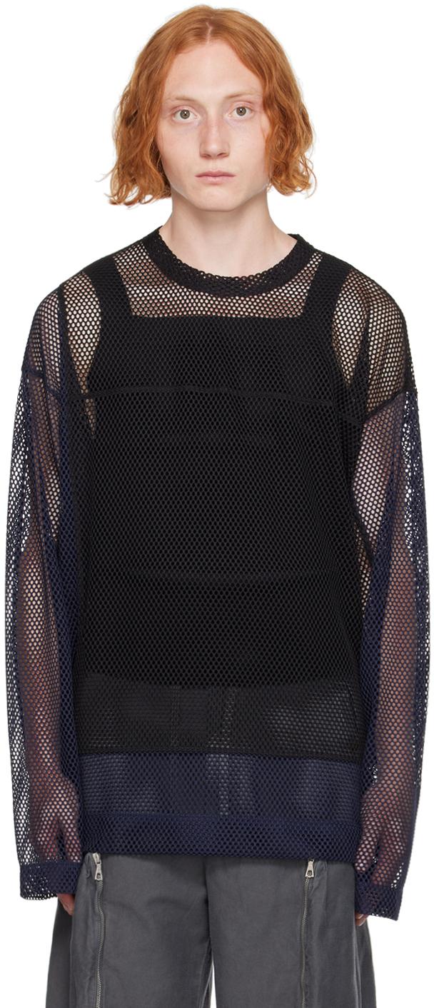 Semi-sheer polyester mesh T-shirt. · Paneled construction · Crewneck · Dropped shoulders Supplier color: Black