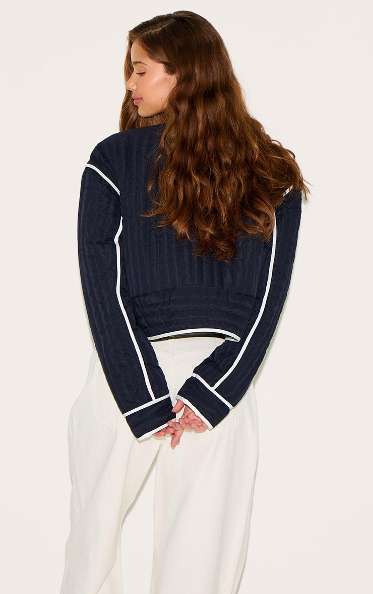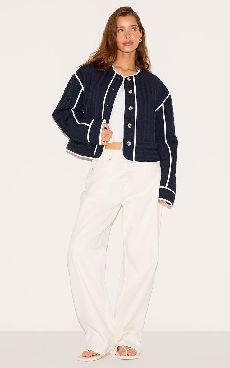 Crafted from a navy material with a button up fastening, a long sleeve fit, a round neck design and a comfy quilted detail. Team this navy button up round neck quilted jacket effortlessly with some wide leg pants and a pair of gold stud fastening earrings to elevate your look instantly.Length approx 48.5cm/19inch (Based on sample size S)Model wears size SModel Height - 5ft 7inchp]:!mb-4inch>Brand: PrettyLittleThingCategory: OuterwearProduct type: JacketColor: NavyMaterial: Cotton PoplinOccasion: Day