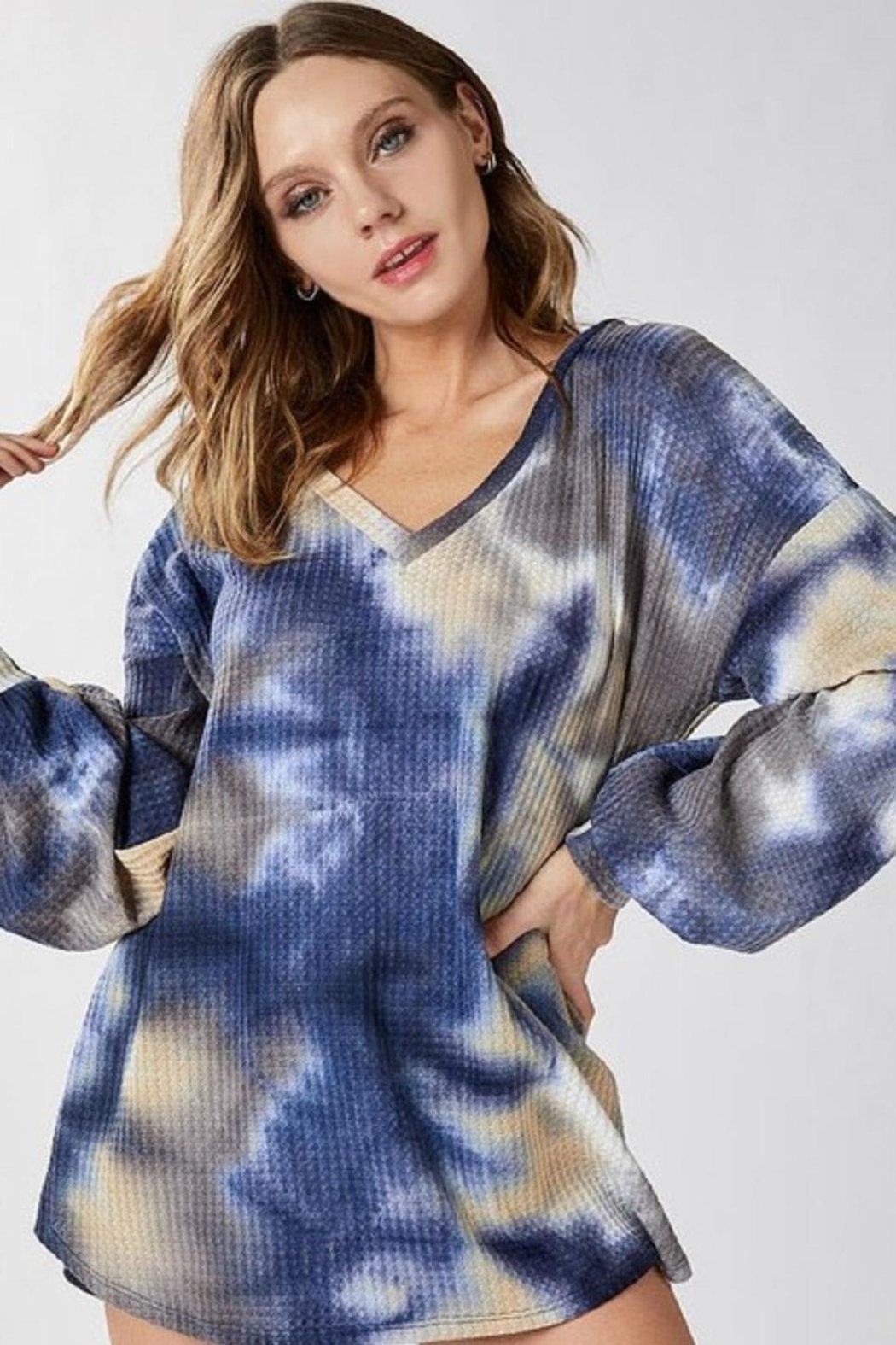 Navy/charcoal Tie Dye Waffle Knit Top
