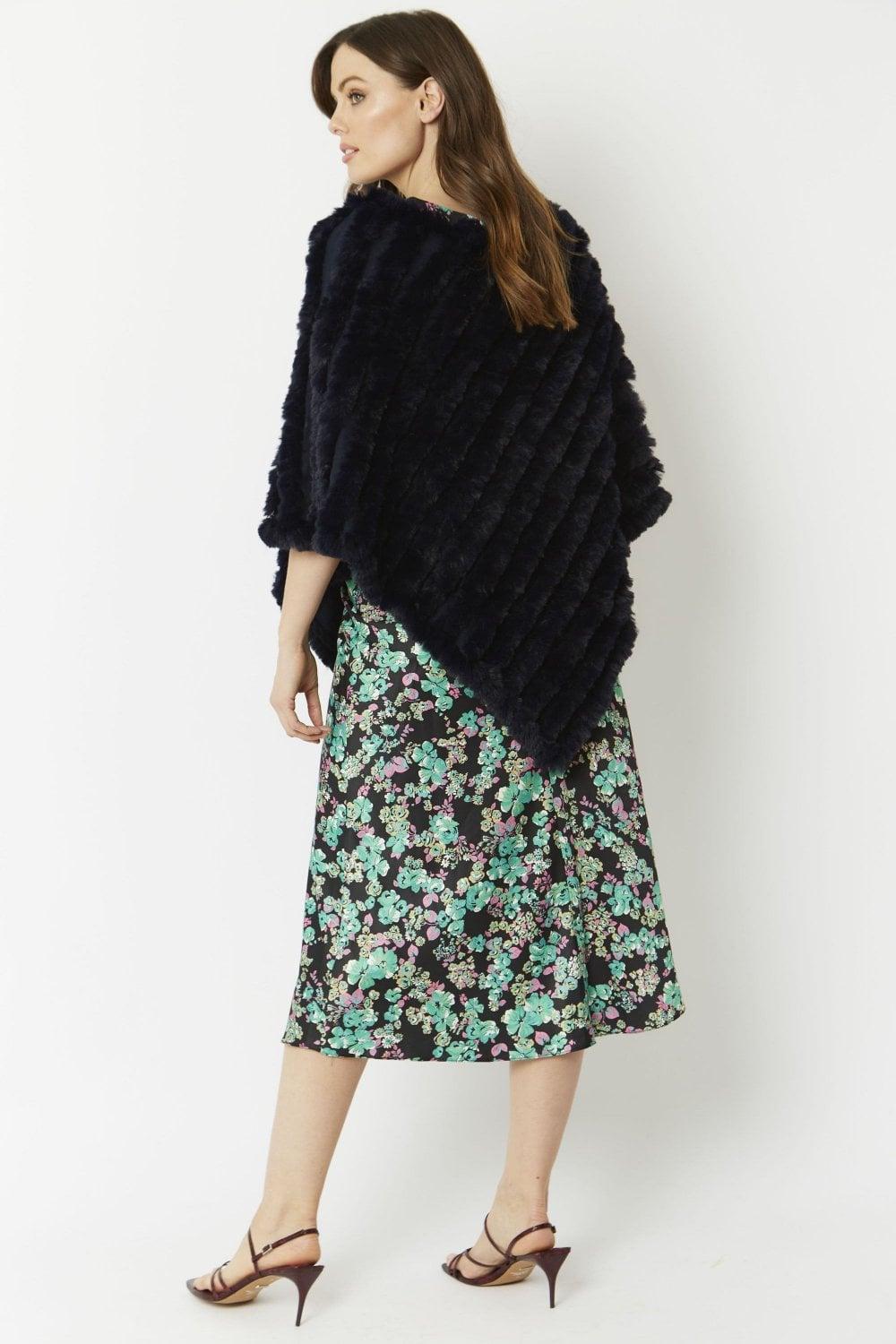 Model Height: 5'8 Model Size: 8 Model Wearing: One Size A poncho never goes out of fashion. submerge yourself in luxury with this high class faux fur poncho.