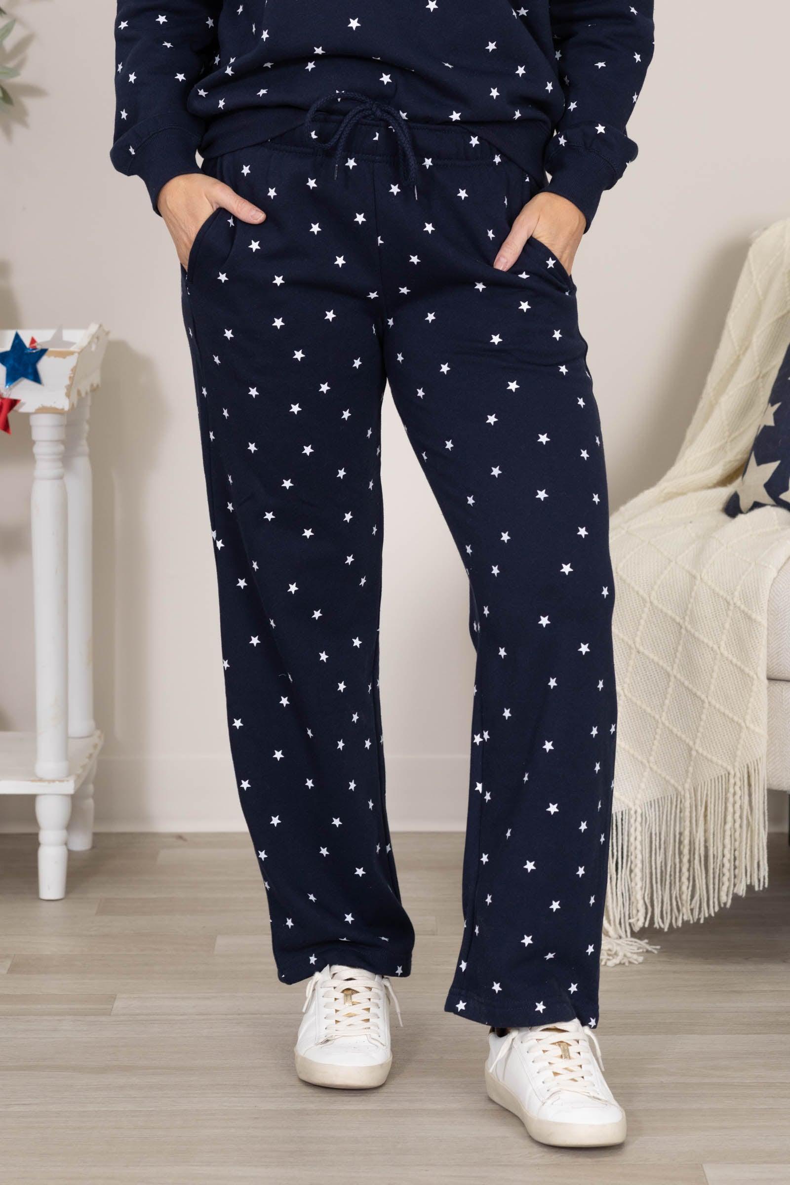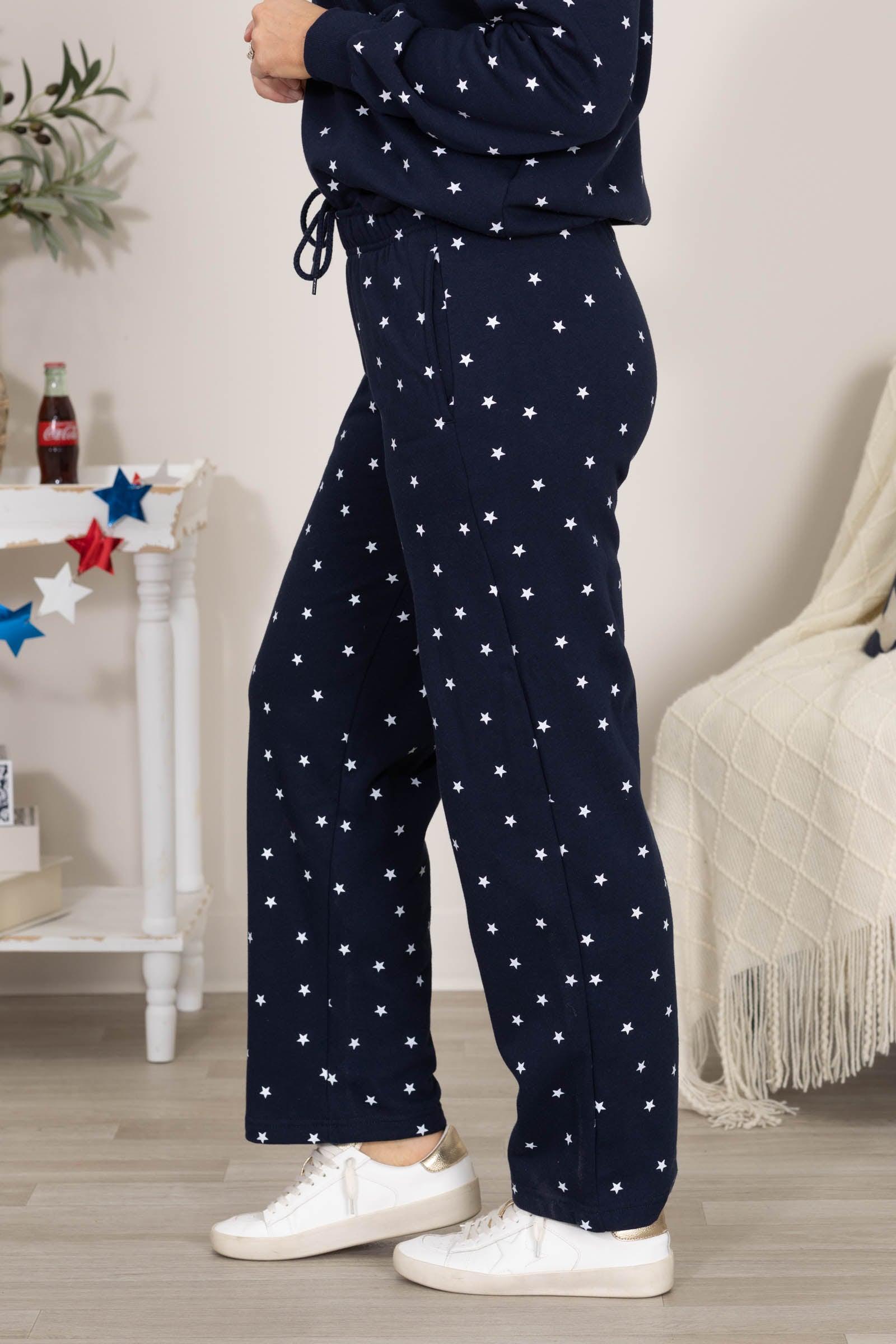 Product Details Color: Navy, White Rise: High Rise Style: Pull On Elastic Waist Brand: Reflex Material and Care 40% Polyester 60% Cotton Machine Wash Cold Tumble Dry Low Size and Fit Small: Waist 24" Rise 10" Inseam 29" Medium: Waist 26" Rise 10" Inseam 29" Large: Waist 28" Rise 10.5" Inseam 29" Erica is 5'7 and wearing a size medium