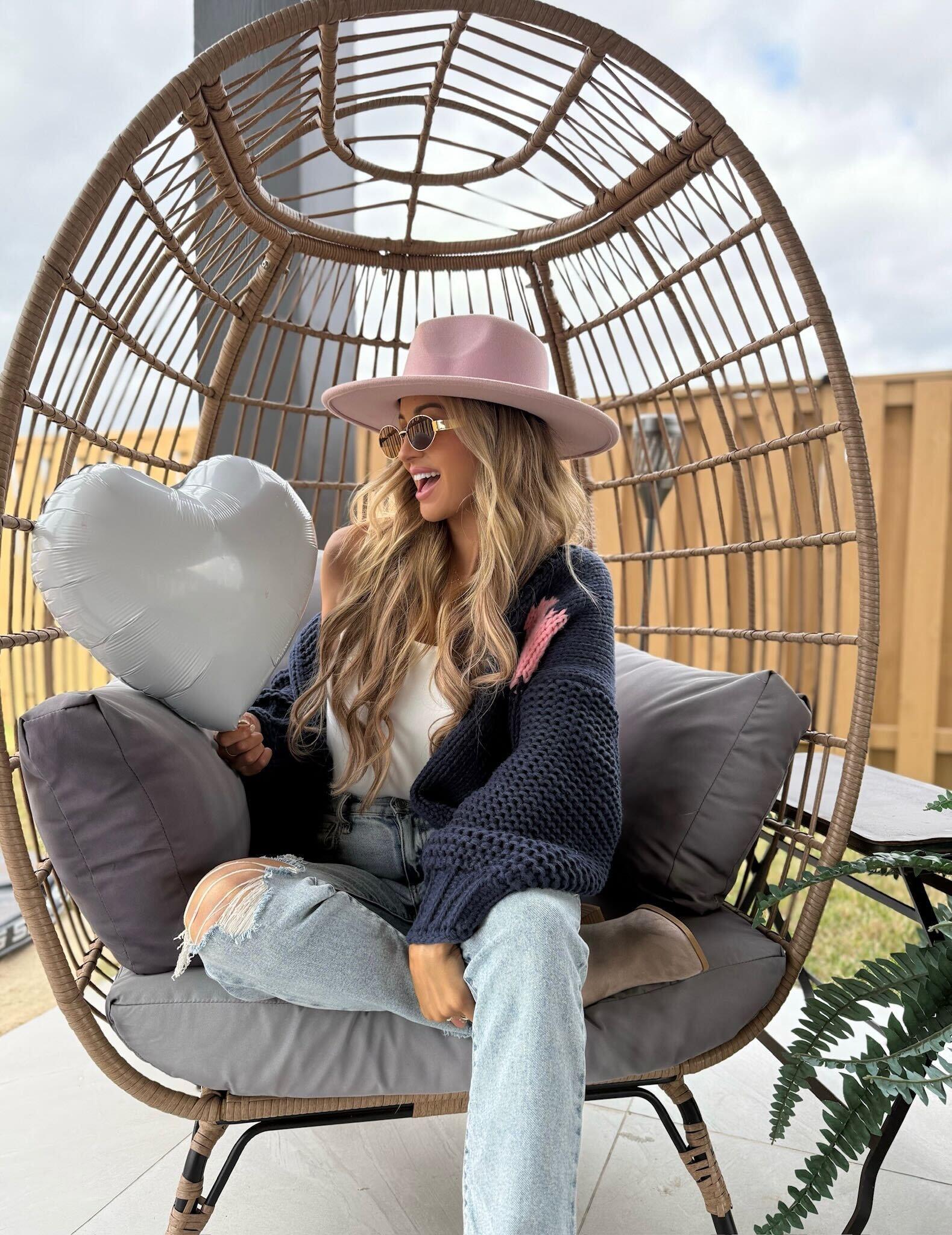 Wrap yourself in warmth and charm with the Navy Heart Shaped Open Front Cardigan! This cozy piece features a chunky design with a playful heart-shaped pattern, making it a stylish and versatile layering option. It's perfect for casual outings or relaxing at home. Pair with a basic long sleeve top, jeans, and comfy sneakers for a casual everyday look!