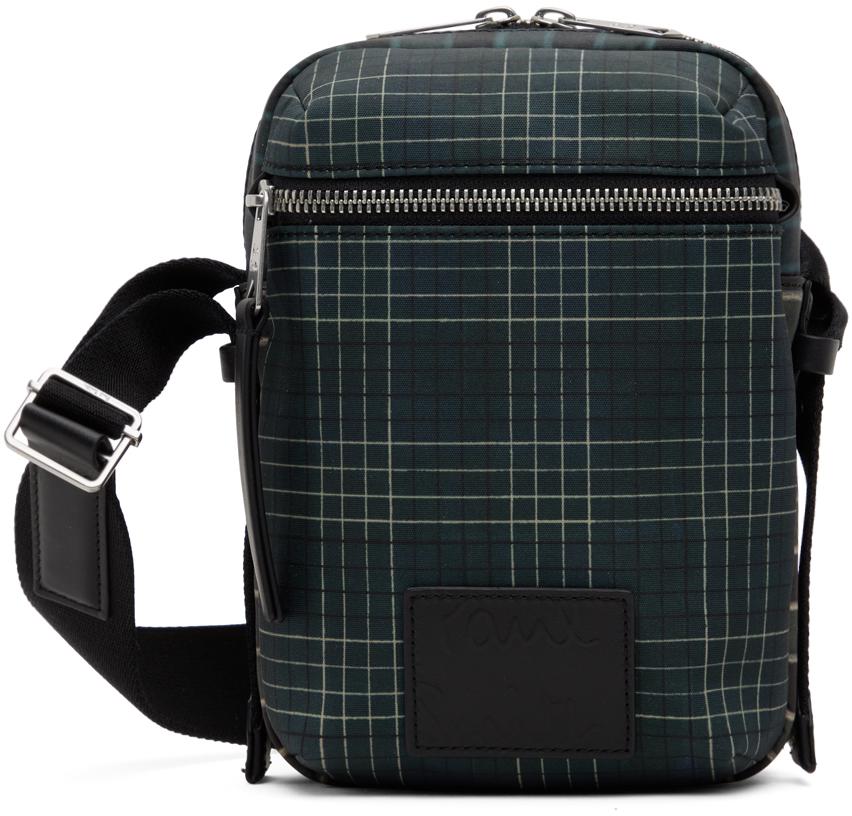 Recycled polyester-blend canvas messenger bag in navy and khaki.