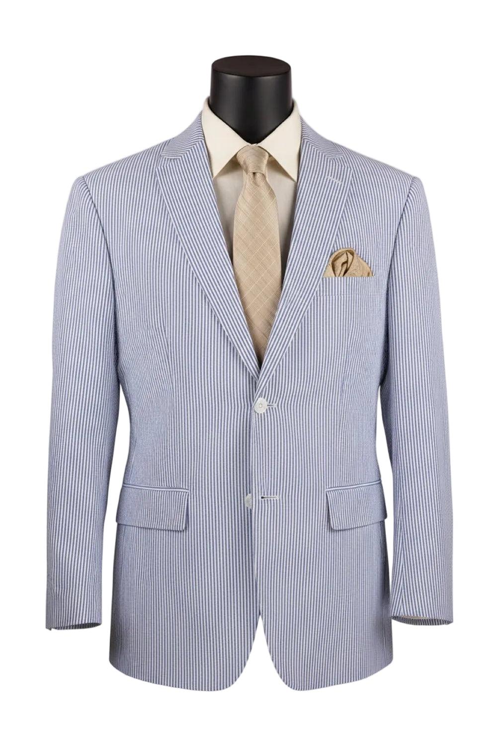 Modern fit 2 piece includes a blazer and pants Single breasted 2 buttons Side vents Flat front pants, un-hemmed bottoms for alteration ease Striped seersucker More colors available SIZE SUGGESTIONFor the best fitting of this MODERN FIT cutting suit, please choose one size (2 inches) larger than your measured chest size. For example, if the chest size is 44", you'll be ordering a 46" Chest - 40 Waist. Fabric PolyRayon Blend Care Instruction Dry Clean Only Package Dimension 20 x 16 x 2 Inches Shipping Weight 3 Pound(s) Place of Design New York City, US Place of Manufacture Imported