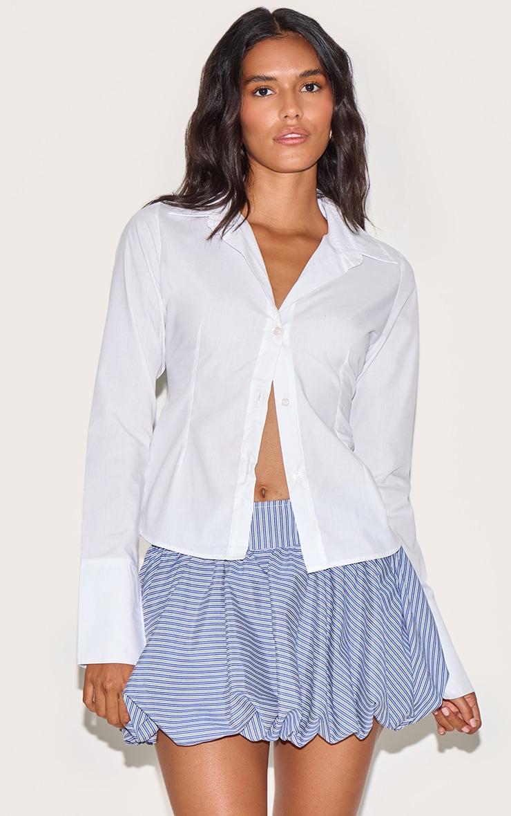 Made from delicately striped navy cotton, this skirt is brought to you in a fashion-forward puffball style with a thick waistband and a mini length fit. Keep it chic by pairing this navy multi stripe cotton puffball skirt with a simplistic white shirt, white strappy kitten heels and minimalistic jewelry.Length approx 32cm/12.5inch (Based on sample size US 4)Model wears size UK 8/ EU 36/ AUS 8/ US 4Model Height - 5ft 7inchp]:!mb-4inch>Brand: PrettyLittleThingCategory: BottomsProduct type: Mini SkirtColor: NavyMaterial: Cotton PoplinDesign: PrintOccasion: Day