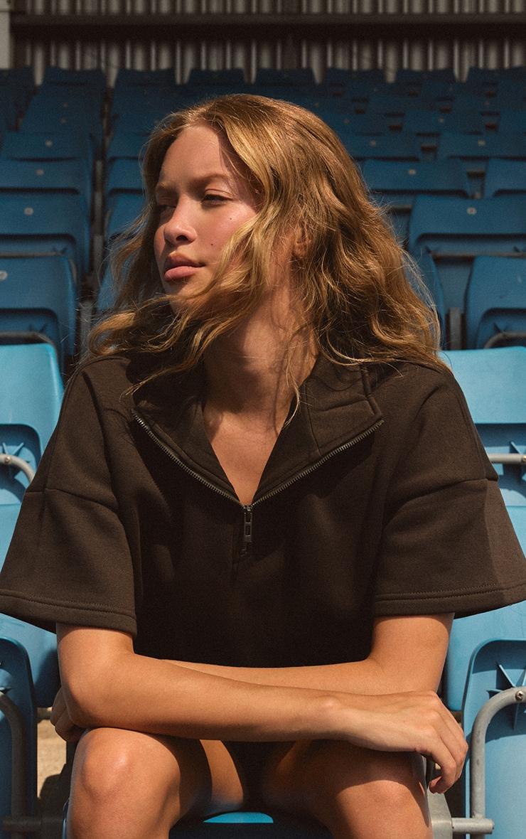 Keep your look relaxed with the chocolate short sleeve 1/2 zip Sweatshirt. Made from a chocolate sweat fabric with short sleeves and a half-zip design, it offers a sporty feel with everyday ease. Style with sweatpants or shorts and some sneakers for an effortlessly cool finish.Length approx 68.5cm/27inch (Based on sample size S)Model wears size SModel Height - 5ft 10inchp]:!mb-4inch>Category: AthleisureProduct type: SweatColor: ChocolateMaterial: Fleeceback SweatDesign: PlainOccasion: Day