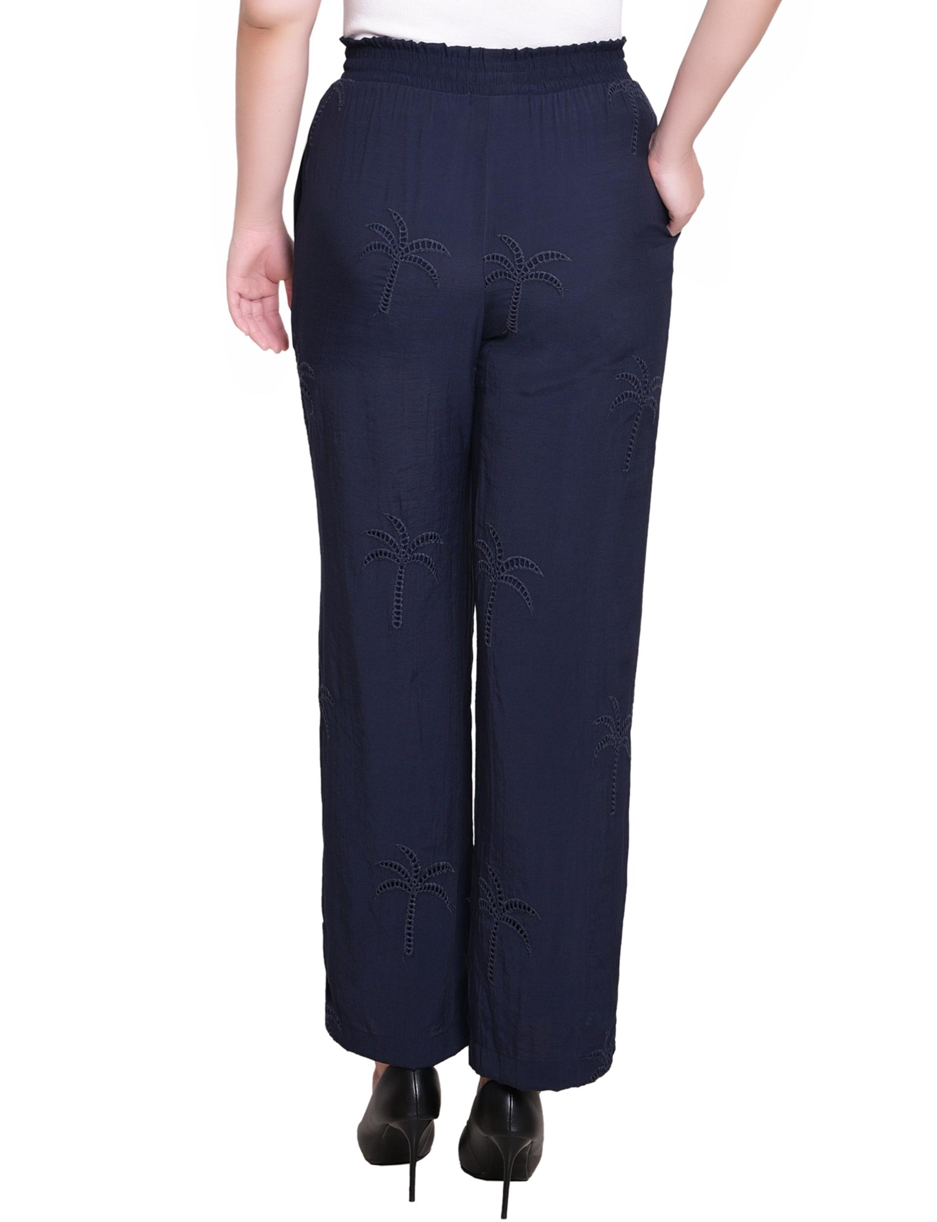 Navy Pull On Pants With Embroidery