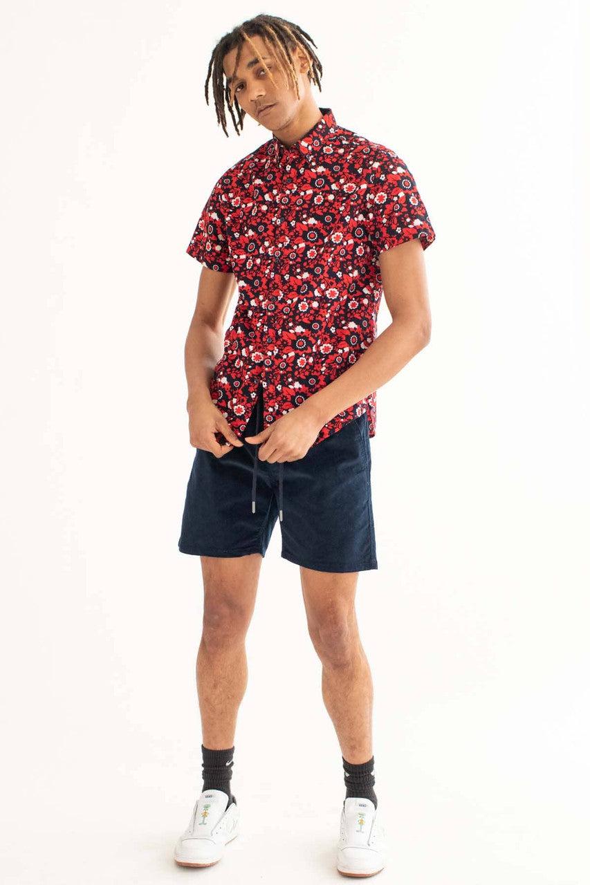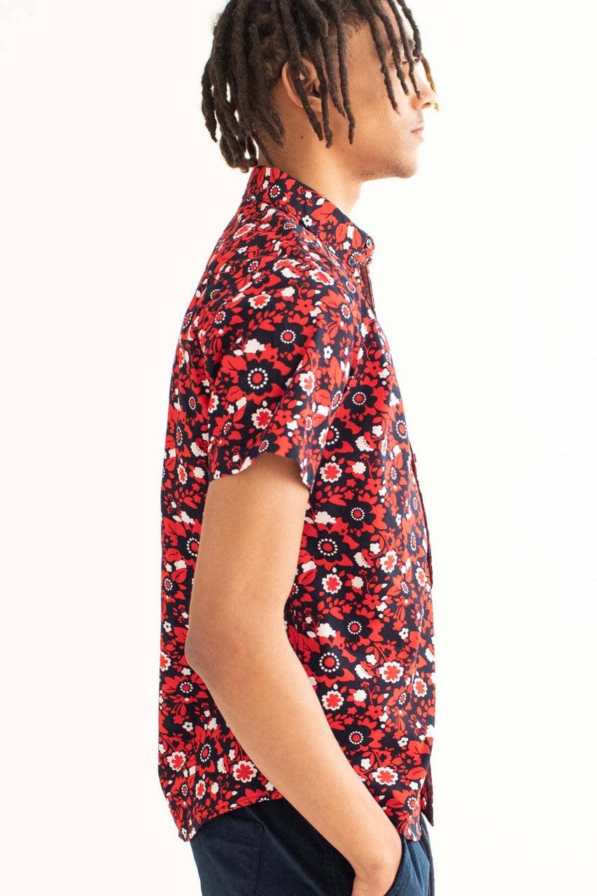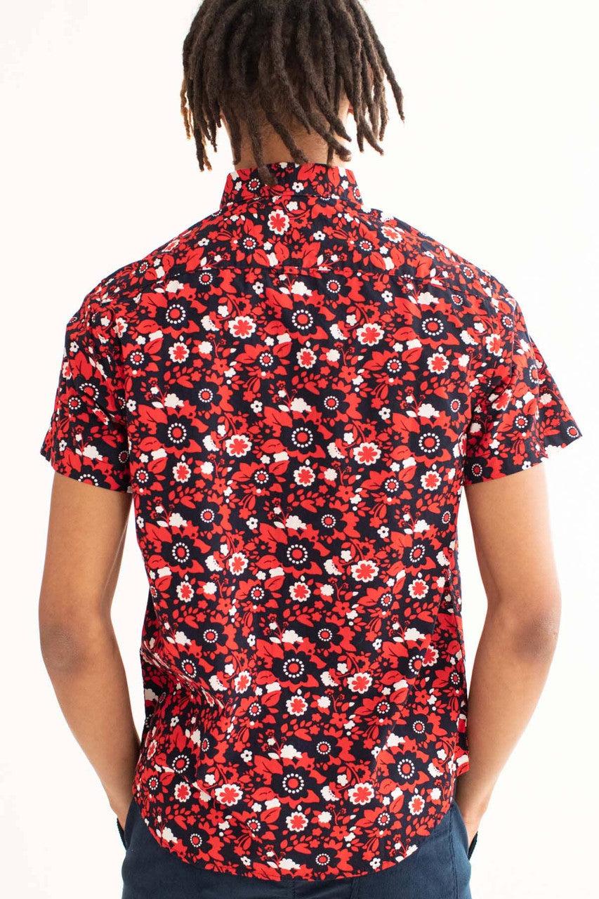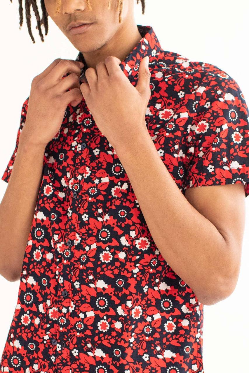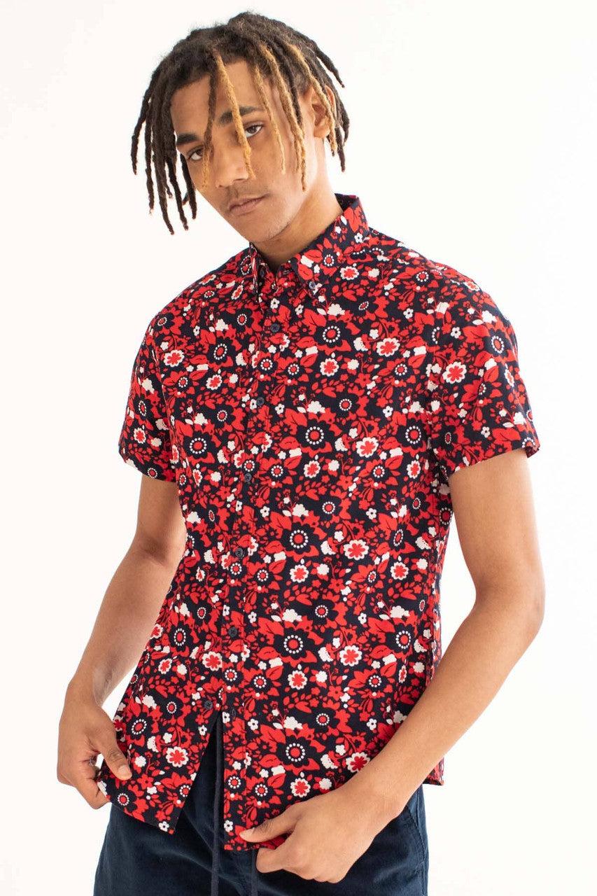 Navy & Red Ditsy Floral Woven Button Up Shirt