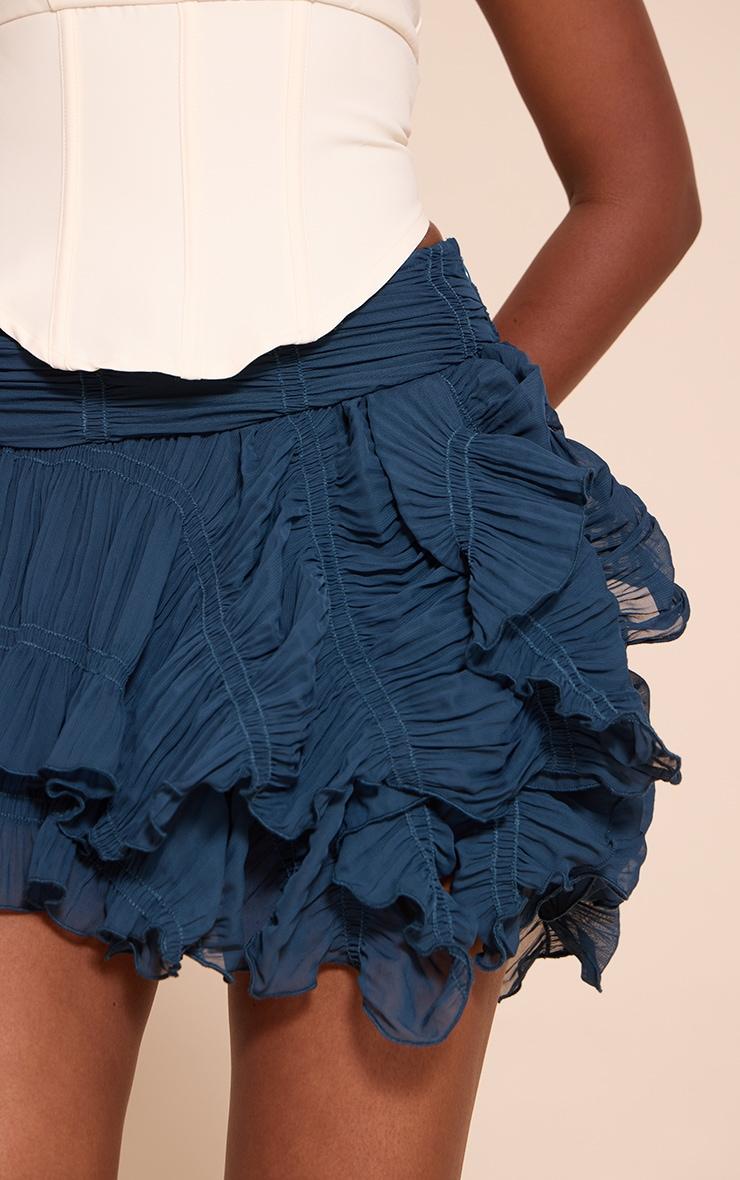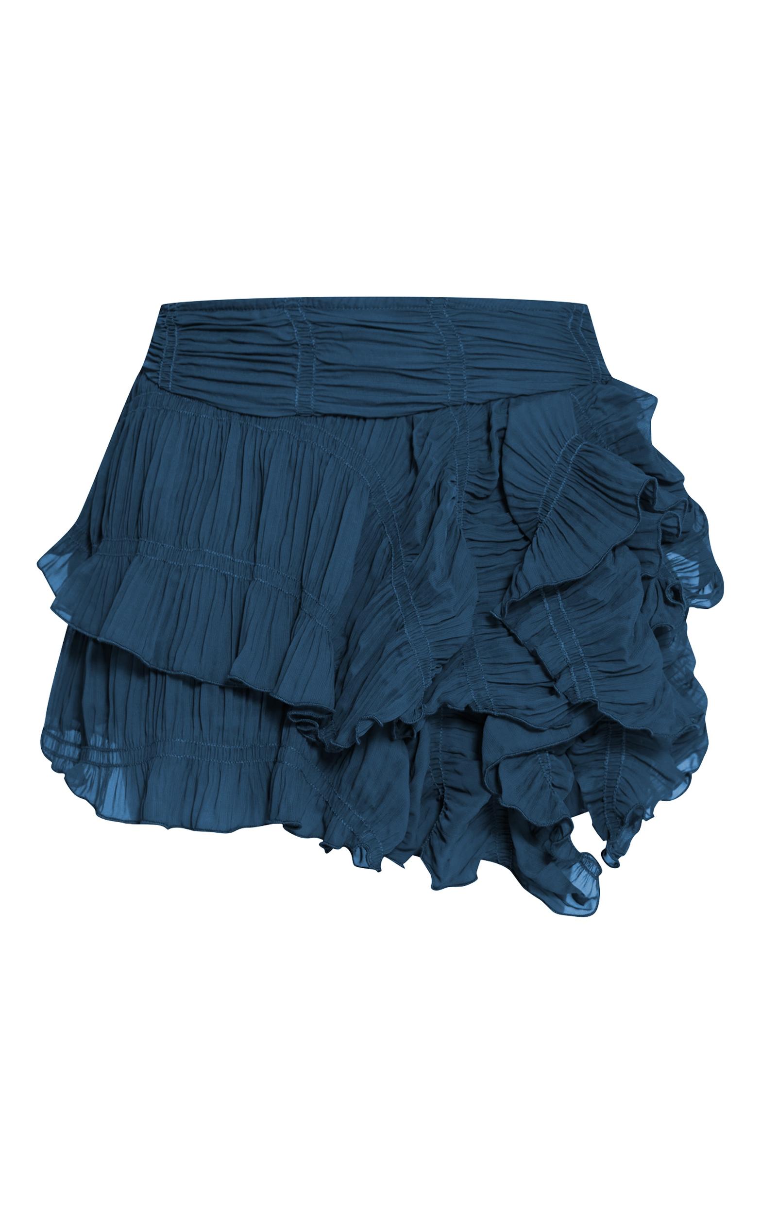 Elevate your separates with the navy ruched textured low rise mini skirt. Made from a navy textured material with ruched detailing and a low-rise fit, it brings a playful twist to classic styling. Team with a simple crop top and slip on thong heels for a sleek finish.Length approx 33cm/13inch (Based on sample size US 4)Model wears size UK 8/ EU 36/ AUS 8/ US 4Model Height - 5ft 9inchp]:!mb-4inch>Category: BottomsProduct type: Mini SkirtColor: NavyMaterial: ChiffonOccasion: Evening