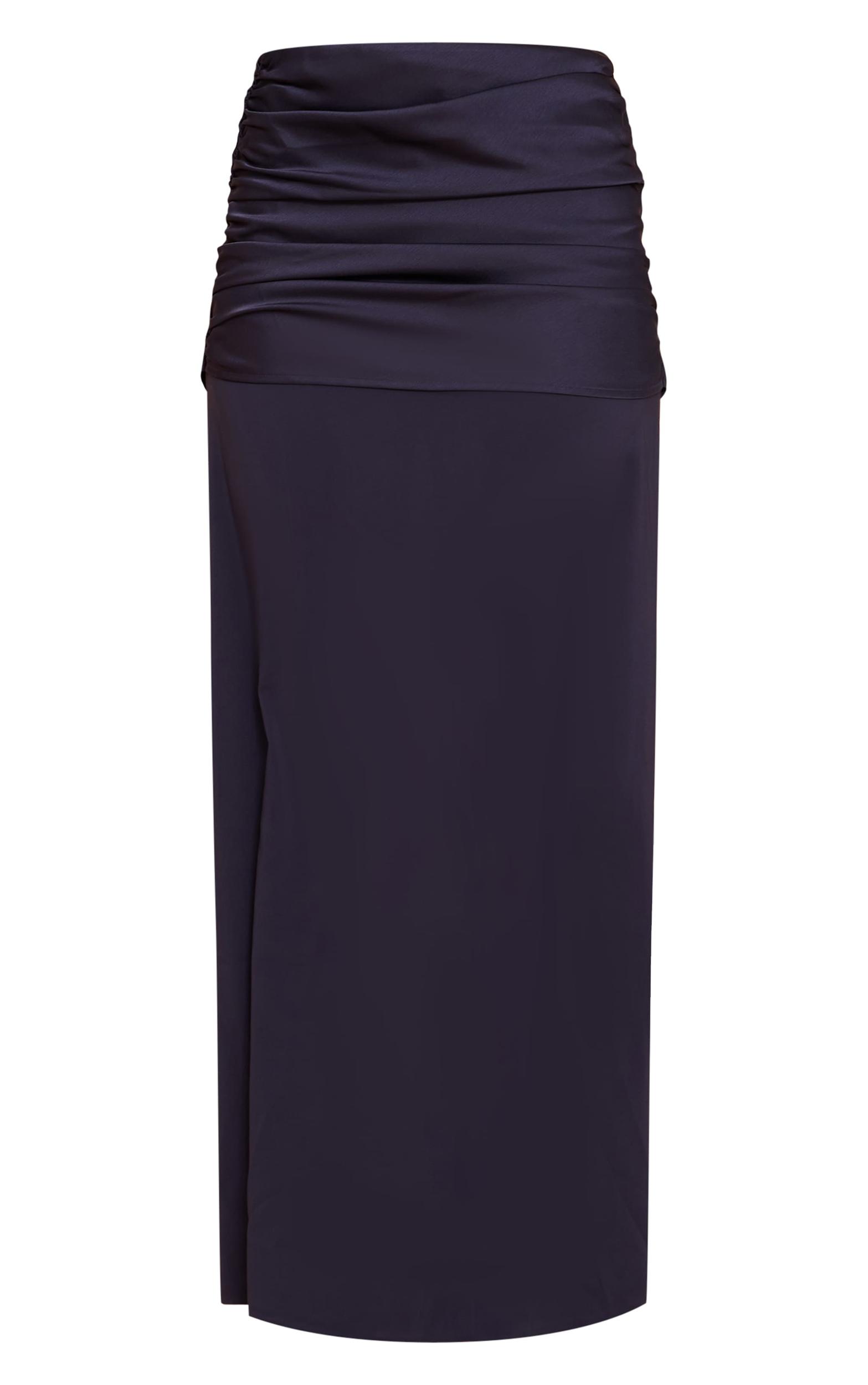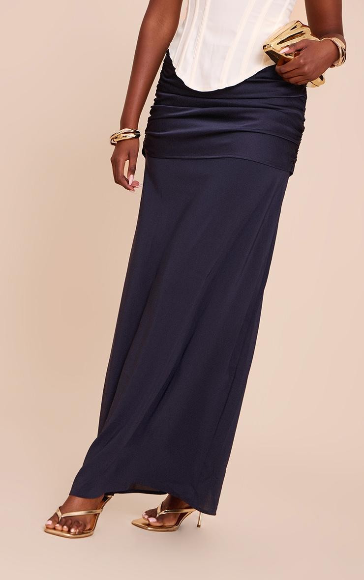 The navy satin overlay chiffon maxi skirt exudes refined luxury with its satin lining and sheer chiffon overlay. Flowing softly from the waist, it drifts beautifully while offering depth through layered textures. Style it with a white top and stiletto heels for evening sophistication, or soften with a tucked-in knit sweater and ballet flats for elevated daywear.Length approx 108cm/42.5inch (Based on sample size US 4)Model wears size UK 8/ EU 36/ AUS 8/ US 4Model Height - 5ft 9inchp]:!mb-4inch>Brand: PrettyLittleThingCategory: BottomsProduct type: Maxi SkirtColor: NavyMaterial: ChiffonDesign: PlainOccasion: Evening