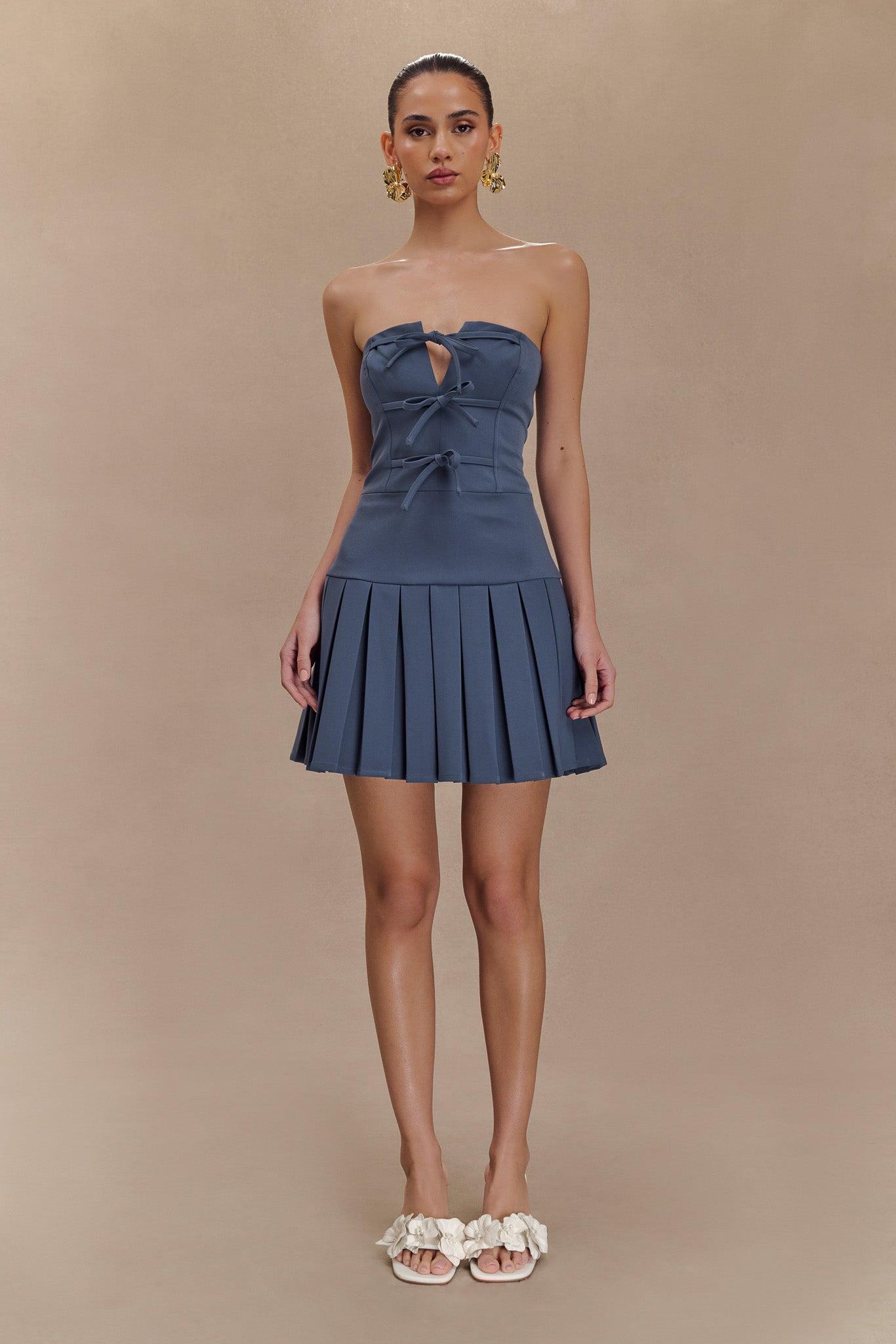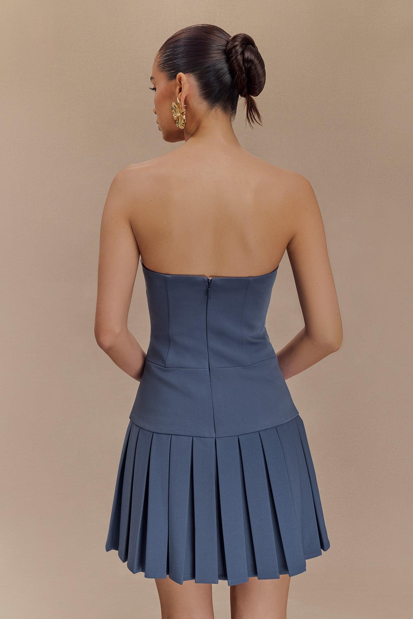 Playfully pleated. Elevate your style with the NAYA Pleated Mini Dress With Ties, a perfect blend of sophistication and charm. This strapless dress features a fitted bodice that accentuates your curves, while the pleated lower skirt creates a flirty and flowing silhouette. The centre back invisible zip offers a seamless fit, ensuring comfort and ease of wear. A delightful front tie detail adds a playful touch, making this dress ideal for both formal occasions and festive gatherings.