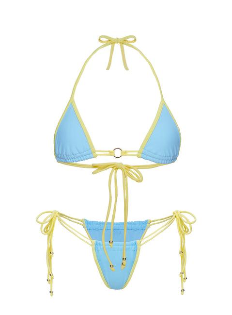 Triangle bikini top Contrast colour design, gold-hoop ring detail, double tie fastening at neck & back, adjustable coverage, no breast pads Good-stretch, fully lined Princess Polly Lower Impact Main: 80% reclaimed nylon 20% spandex, Lining: 90% polyester 10% elastane Rinse in cold water before and after wear