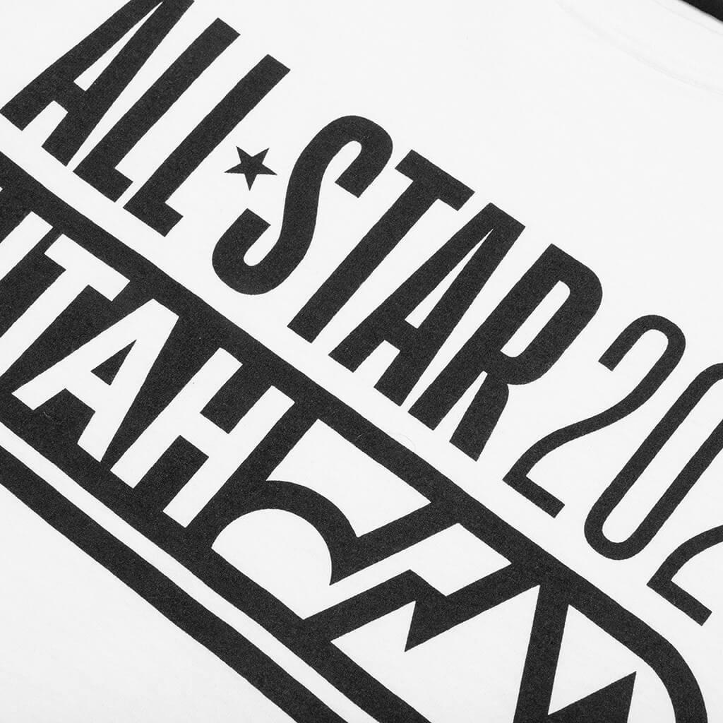 Celebrate this year’s NBA All-Star Weekend with us in our FEATURE NBA All-Star ‘23 L/S Tee. Cut from 6.5 oz heavy weight cotton and made domestically, the tee utilizes ribbed detailing at the neckline and cuffs. Screen-printed FEATURE branding and NBA graphics can be seen at the left sleeve. All-Star-inspired typography and graphics at the front complete the rest of the look. ALL SALES ARE FINAL. Exclusive to FEATURE 6.5 oz heavy weight cotton Standard fit Ribbed neckline Ribbed cuffs Screen-printed branding Screen-printed typography Screen-printed graphics Made in USA Style No: F021823X11WH