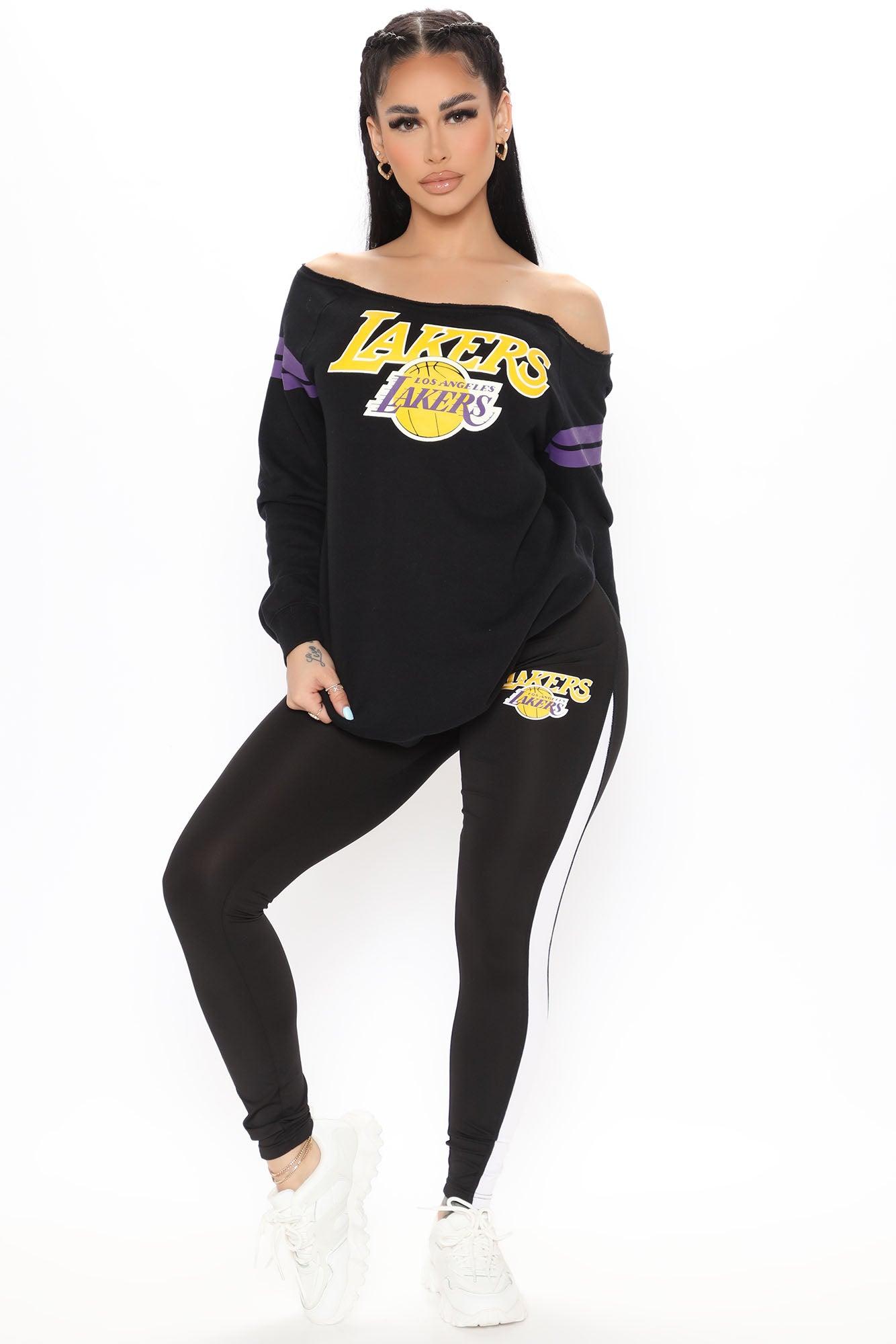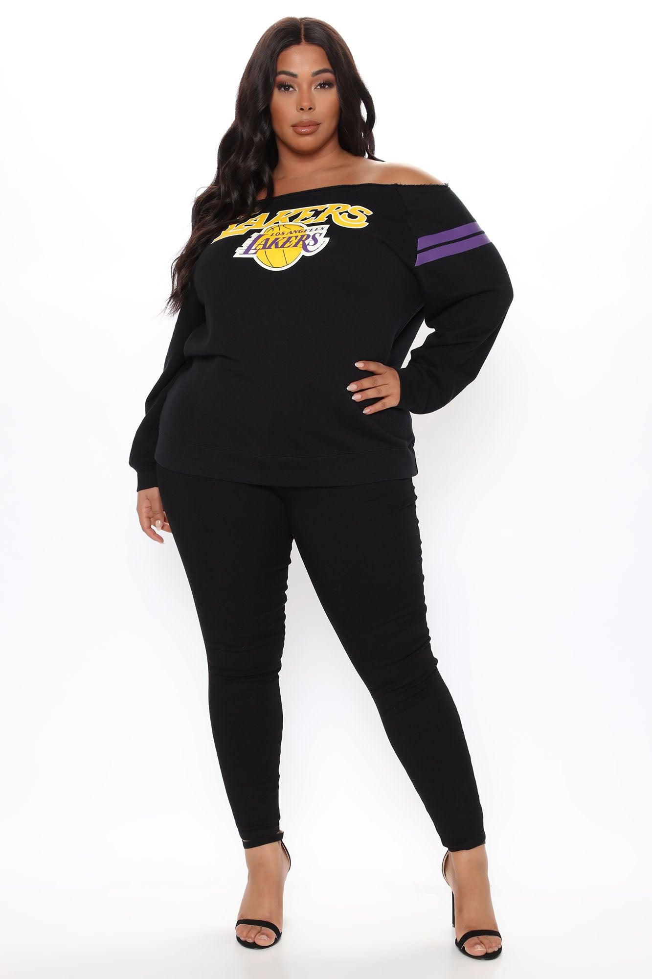 Available In Black. Off Shoulder Sweatshirt Logo Front Contrast Line Detail Ribbed Cuff And Hem Lakers Design Oversized Stretch Disclaimer: Due To The Printing Process A Difference In Saturation May Occur. Each Garment Is Unique 60% Cotton 40% Polyester Imported