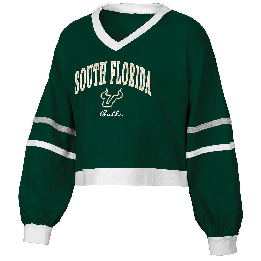 NCAA South Florida Bulls Women's Long Sleeve V Neck T-Shirt : Relaxed Fit Pullover