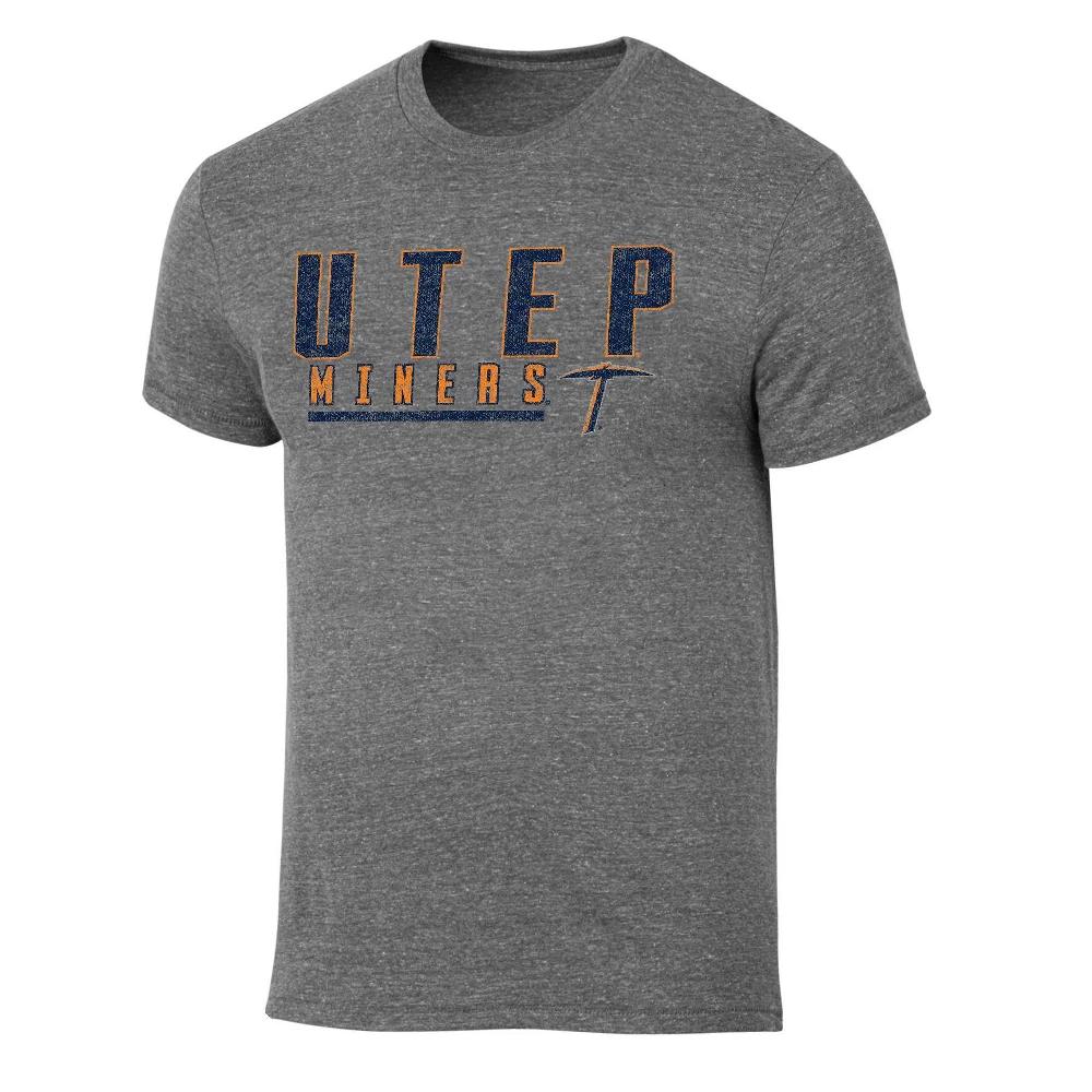 NCAA UTEP Miners Men's Gray Tri-Blend Short Sleeve T-Shirt - M: Fit, Crew Neck