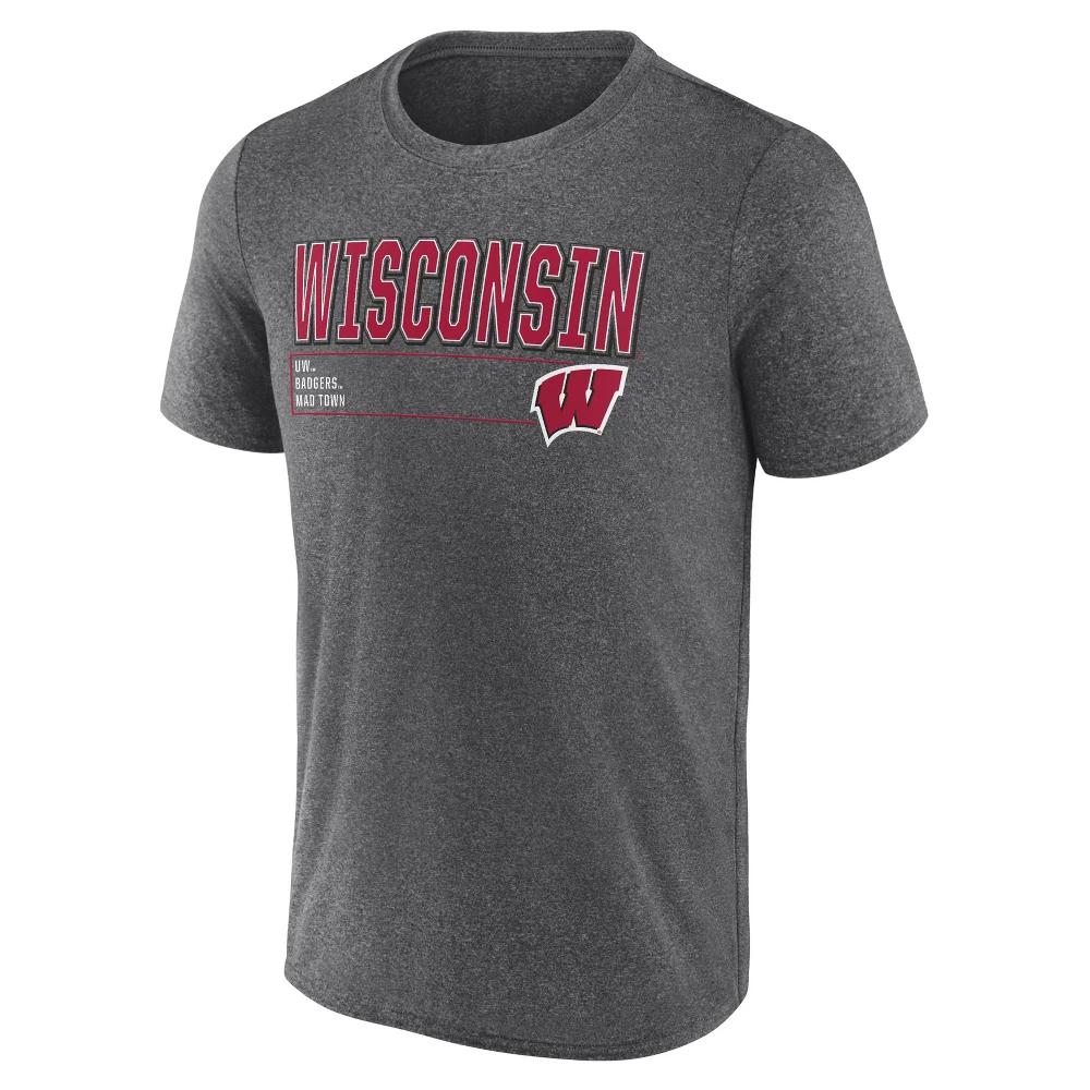 NCAA Wisconsin Badgers Men's Charcoal Heather Poly T-Shirt - XXL