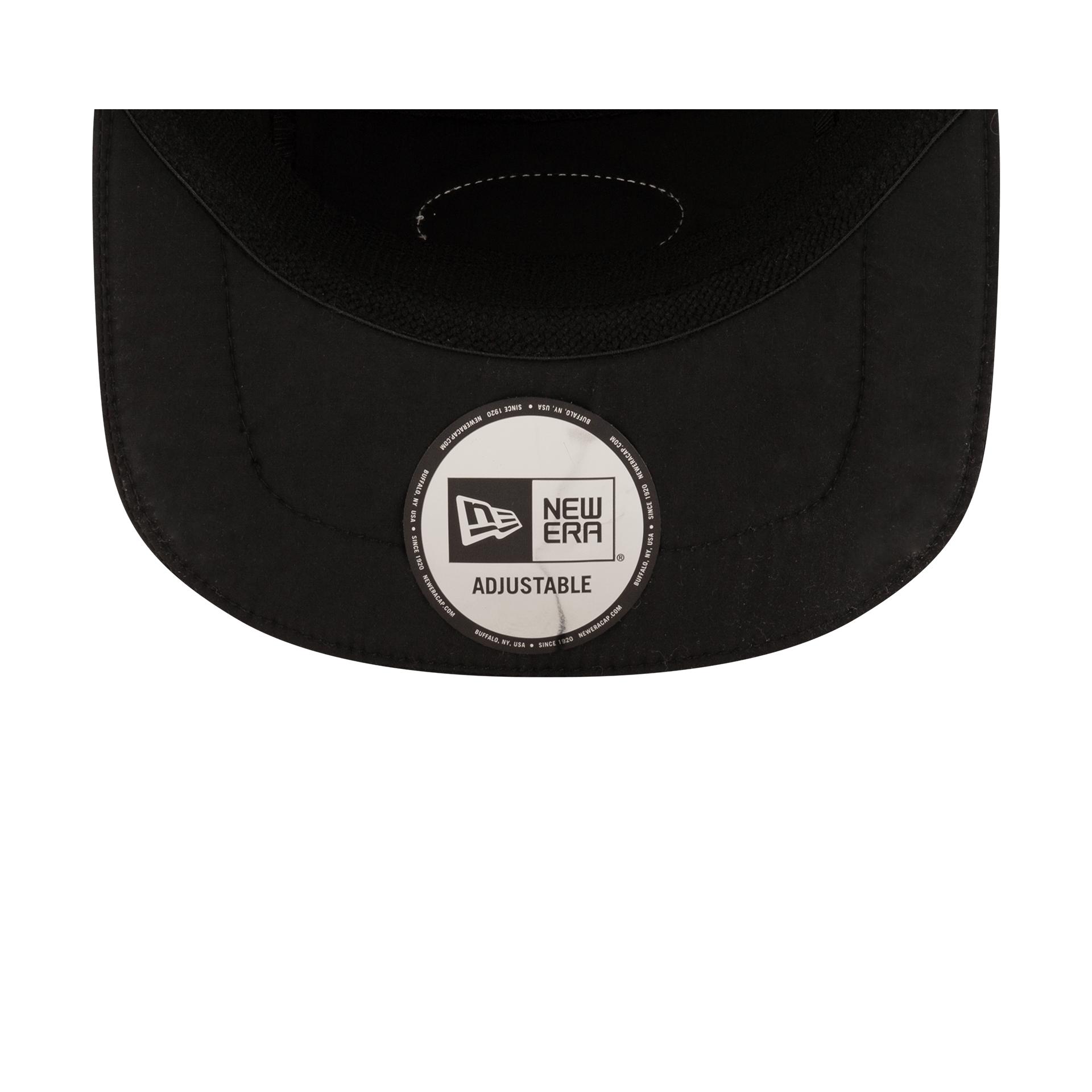 The NE2K Black Runner Adjustable Cap features: Branded silicone patch at the front panel New Era Flag logo patch at the left-wear side Open back style with adjustable closure Unstructured, relaxed front panels for a casual, well-worn shape Unstructured, flexible visor Color: Black Fabrication: 52% Polyester, 48% Cotton