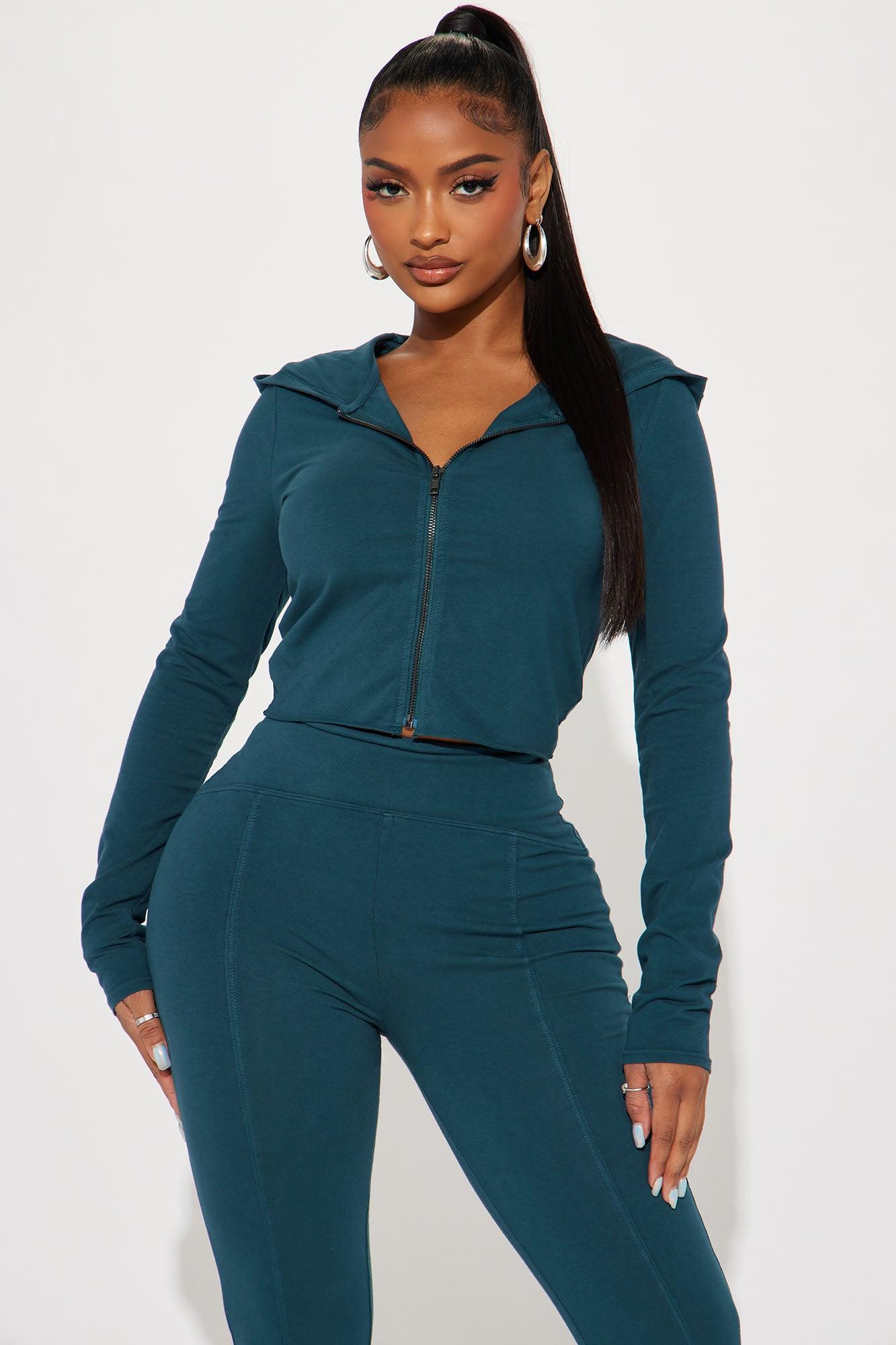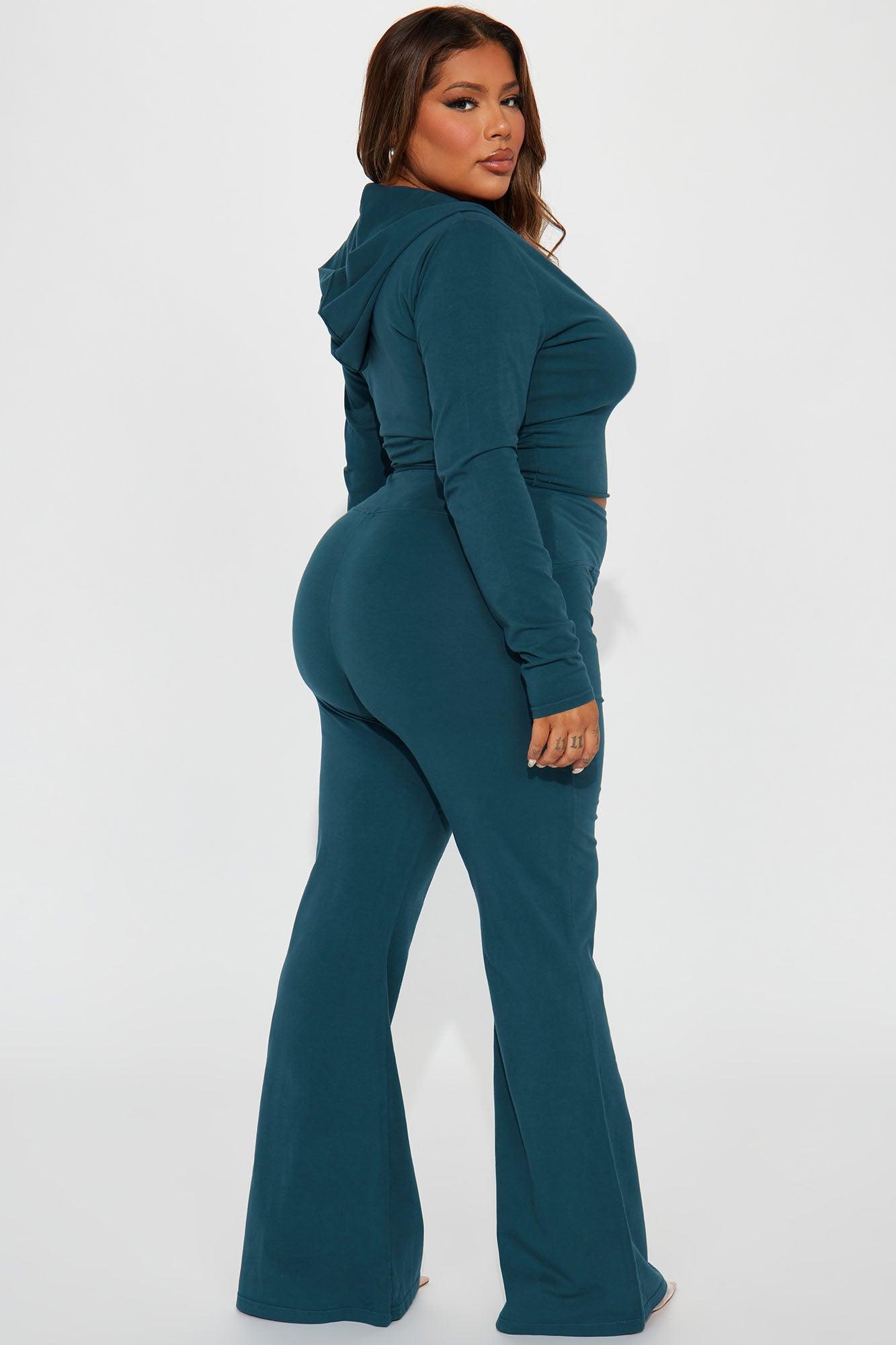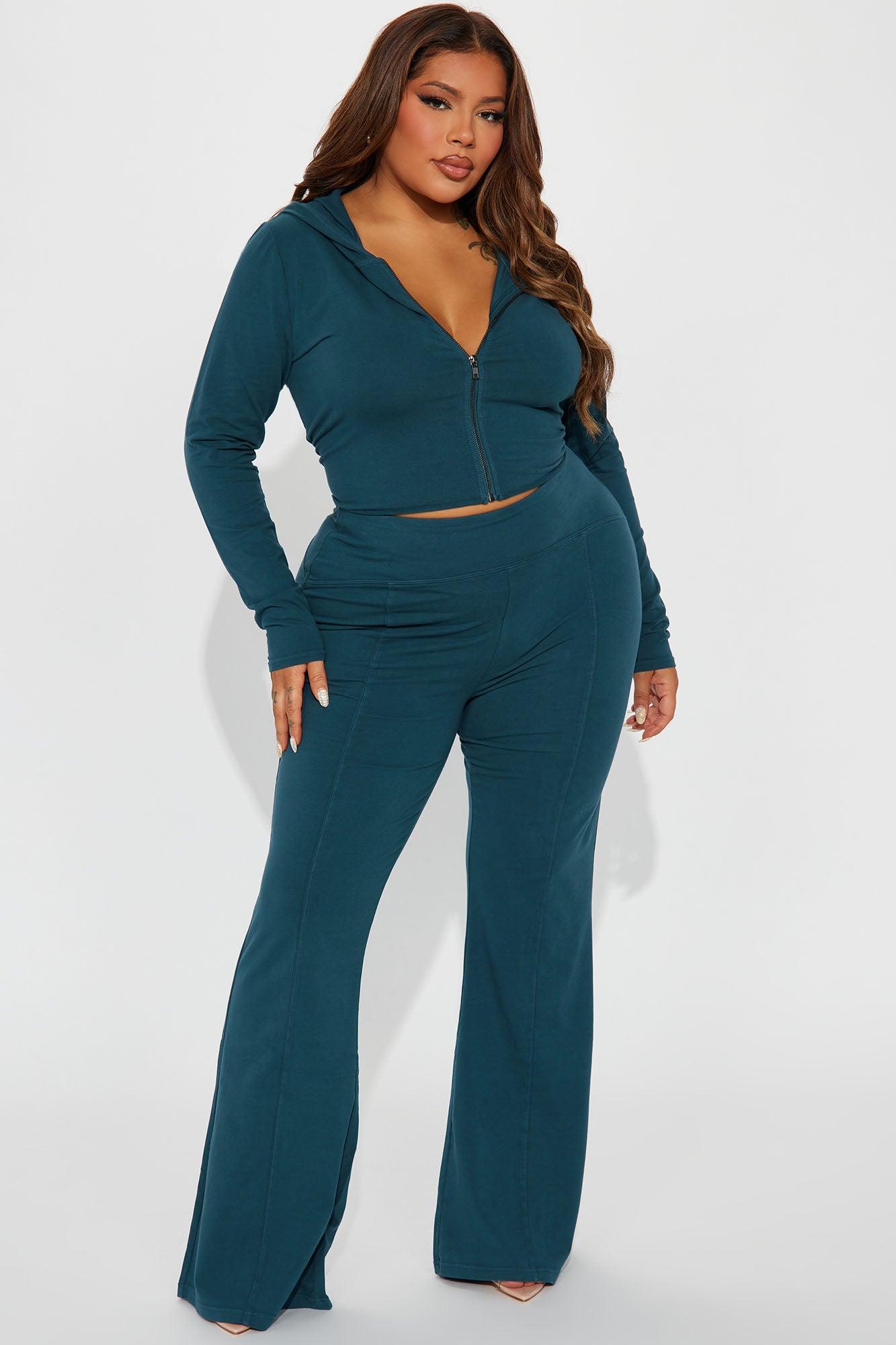 Available In Black, Hunter, And Orchid. Mineral Wash Pant Set Crop Hoodie Zip Front Long Sleeve Flare Pant High Waist Seam Detail Stretch Inseam: 31" Disclaimer: Due To The Specialized Wash. Each Garment Is Unique. 92% Cotton 8% Spandex Imported
