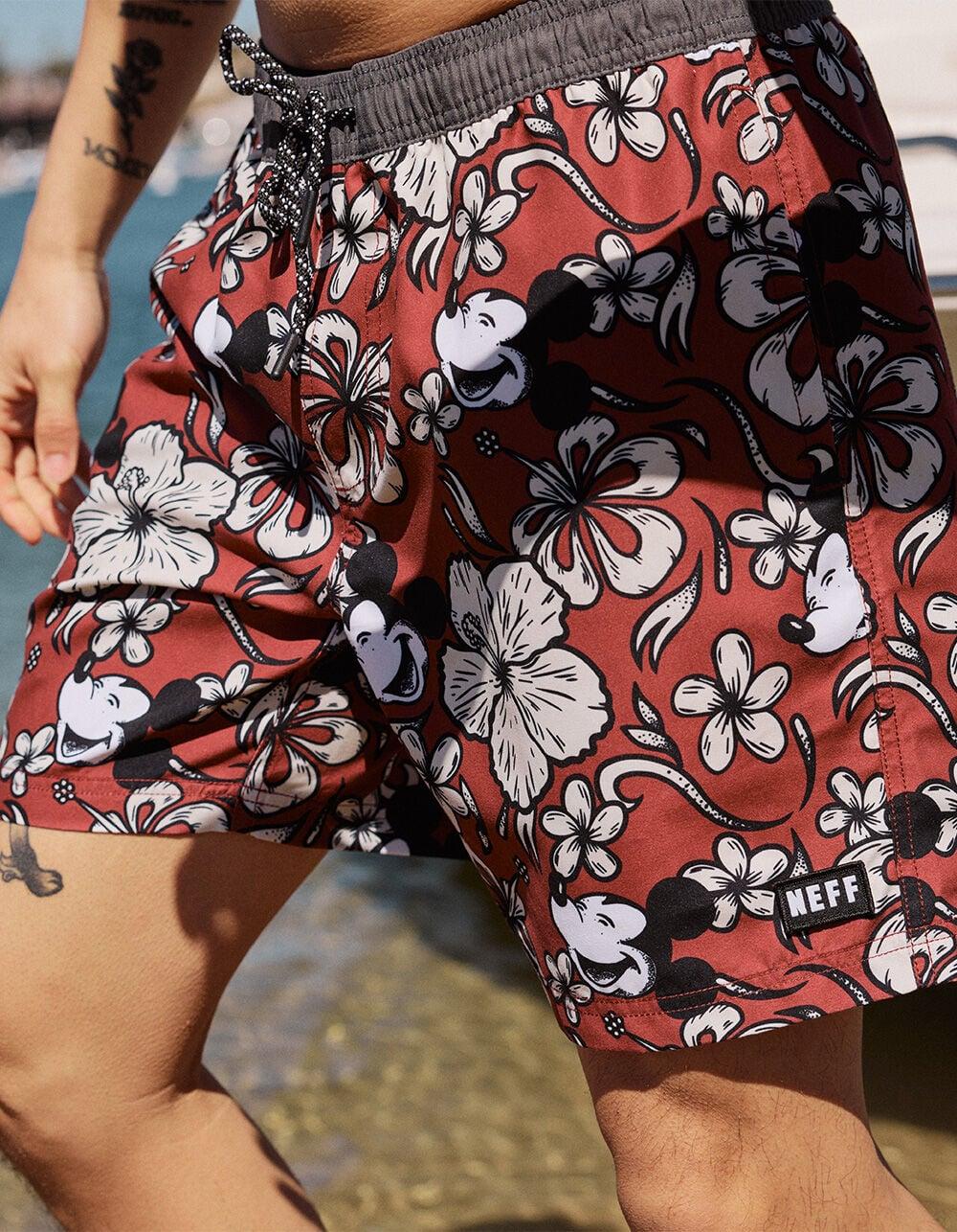 NEFF Tropic Mouse Mens 17" Volley Shorts - BURGUNDY