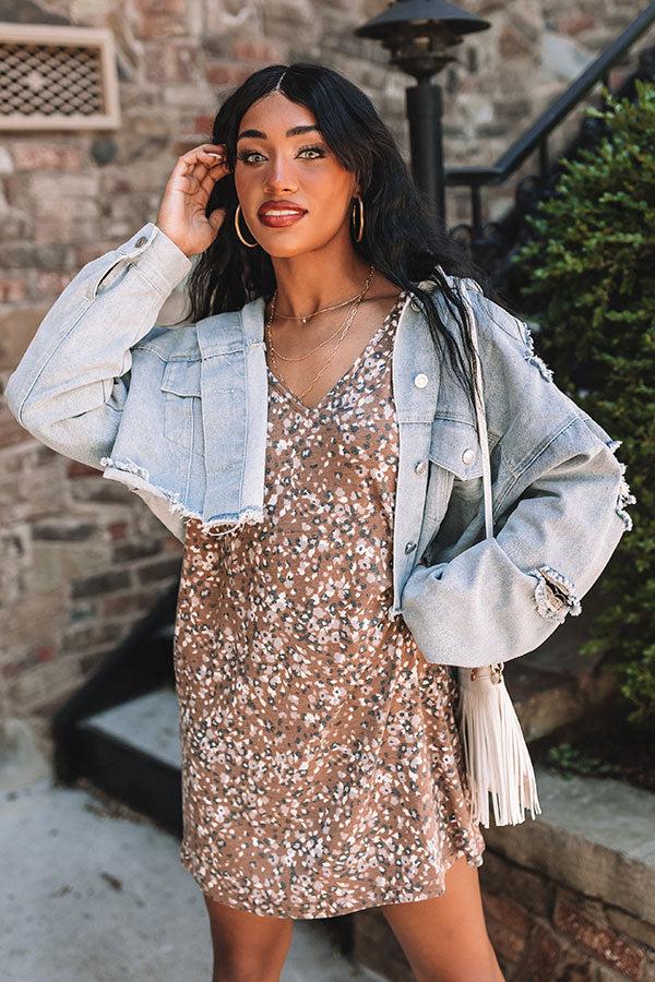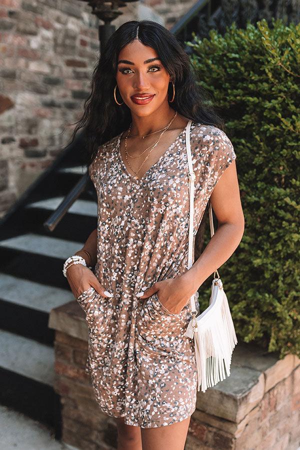 Keep casual in our cute 'Neighborhood Walk' t-shirt dress featuring soft lightweight material patterned with a dark grey and white leopard print, a v-cut neckline, cap sleeves, hidden front pockets, and a relaxed silhouette that ends in a straight mid-thigh length hemline! Measurements S : Bust 40", Hip 42", Length 32", Waist 41". M : Bust 42", Hip 44", Length 33", Waist 43". L : Bust 44", Hip 46", Length 33.5", Waist 45".