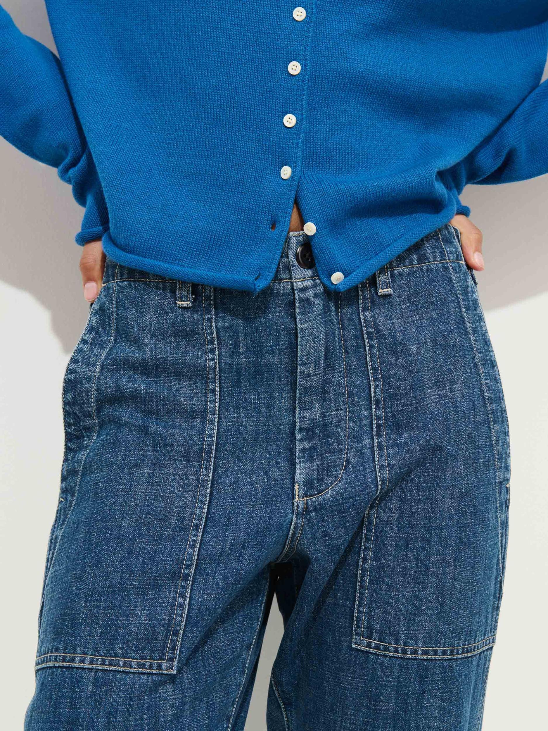 We took our fan-and-office-favorite Neil Pant and made it in a crosshatch denim. Details we love: 100% cotton, patch pockets, adjustable waist tabs "The slightly longer rise means you can wear them at your true waist or low-slung on the hips." - Alice, Women's Designer Finished with patch pockets and adjustable tabs at